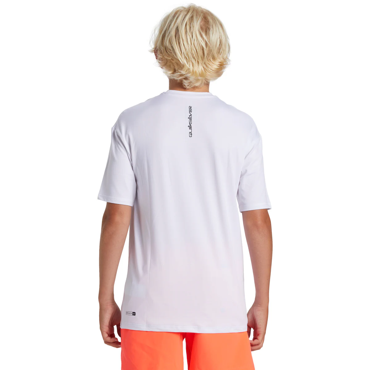 Футболка для серфинга с коротким рукавом и защитой от солнца UPF 50 для детей 8-16 лет. Особенности: Коллекция: Everyday, ткань с комбинированным составом переработанного полиэстера и эластана, влагоотводящие свойства, которые предотвращают потоотделение и поддерживают кожу в сухости., Устойчивость к хлору, защита от солнца UPF 50+,染料: окраска в растворе (черный), свободный крой, круглый вырез, короткий рукав, Другие особенности: ткань с тонким начесом на ощупь напоминает хлопок и изготовлена из переработанных нитей, спроектирована так, чтобы не растягиваться со временем.