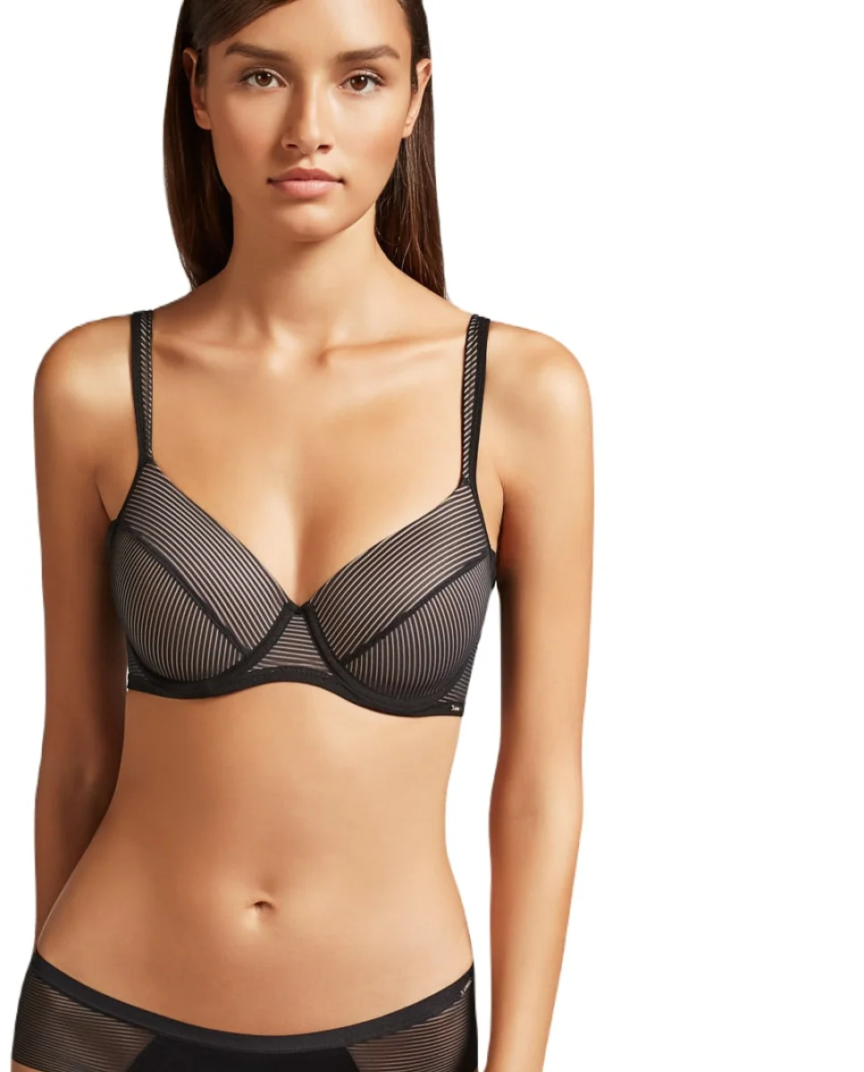 Снижующий нагрузку на спину бюстгальтер с треугольными чашками, пеной и отделкой Infinity Band , разработанный из ультралегкой ткани нового поколения с невидимым эффектом, без окантовки по краям, которая предотвращает появление следов под одеждой. Формирующий узор, который минимизирует неровности на спине и подмышках. Регулируемые, широкие и мягкие бретели для большего комфорта и дополнительной поддержки. Застежка на спине с четырехпозиционным креплением. Доступен в черном и телесном цветах и в чашках C, D и E. Сочетайте его с классическими или высокими трусиками в тон.