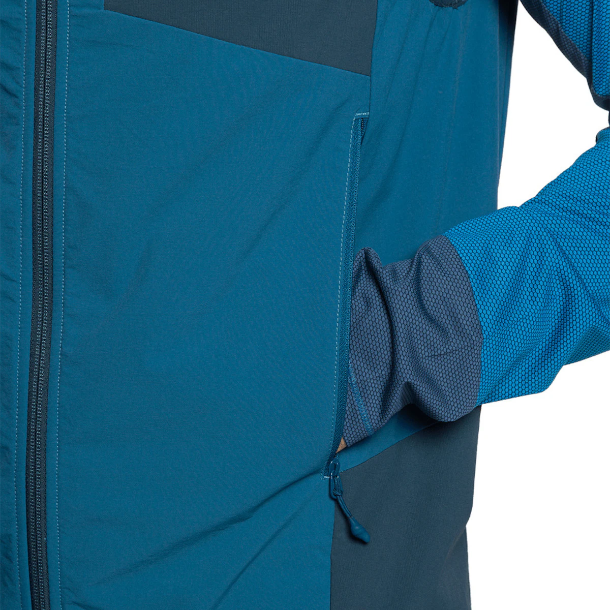 Эластичный переработанный нейлоновый жилет для альпинизма. Эластичный подол, длинная молния, карманы на грудной и боковой части с молнией. Дышащий, быстро сохнущий, универсальный дизайн, обработка водоотталкивающим средством без ПФК.