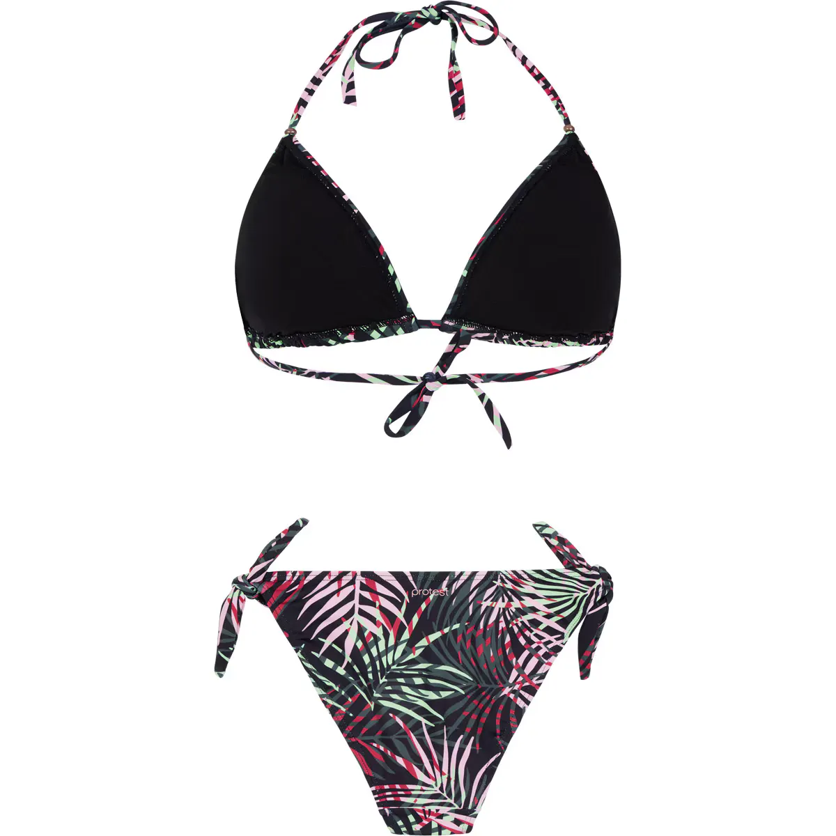Этим летом производите эффект с PRTISOLA от Protest. Этот прекрасный комплект включает в себя красивый треугольный топ купальника с индивидуальной и поддерживающей посадкой благодаря завязкам на спине и шее, а также съемным быстросохнущим чашечкам. Соответствующие обычные плавки имеют красивые бантики по бокам из той же ткани. Цветочный принт - это удачный выбор. PRTISOLA также входит в нашу коллекцию PVRE Green; наша инициатива по улучшению устойчивости наших коллекций. PRTISOLA изготовлена из переработанного материала, и в процессе производства не используются ПФК.