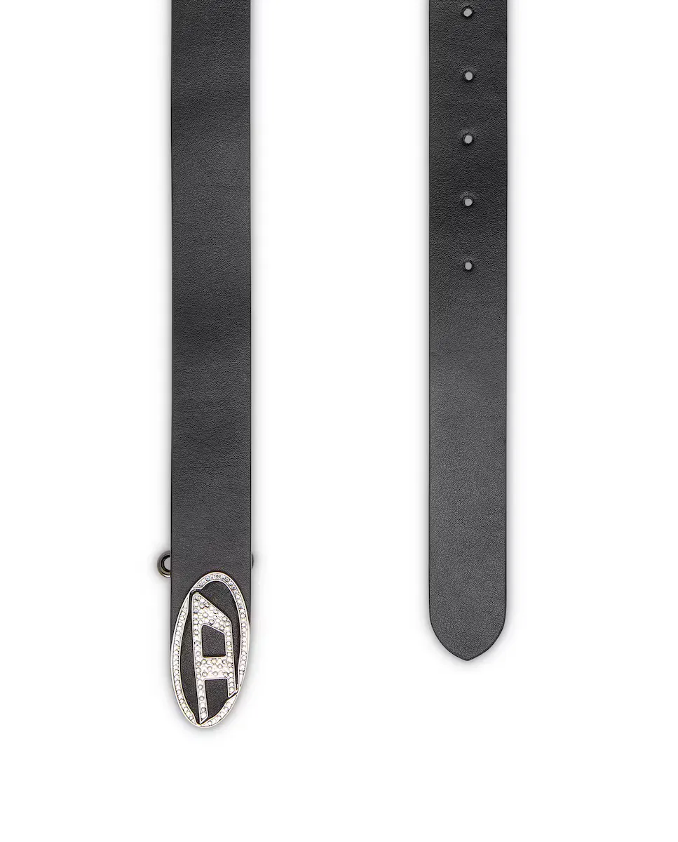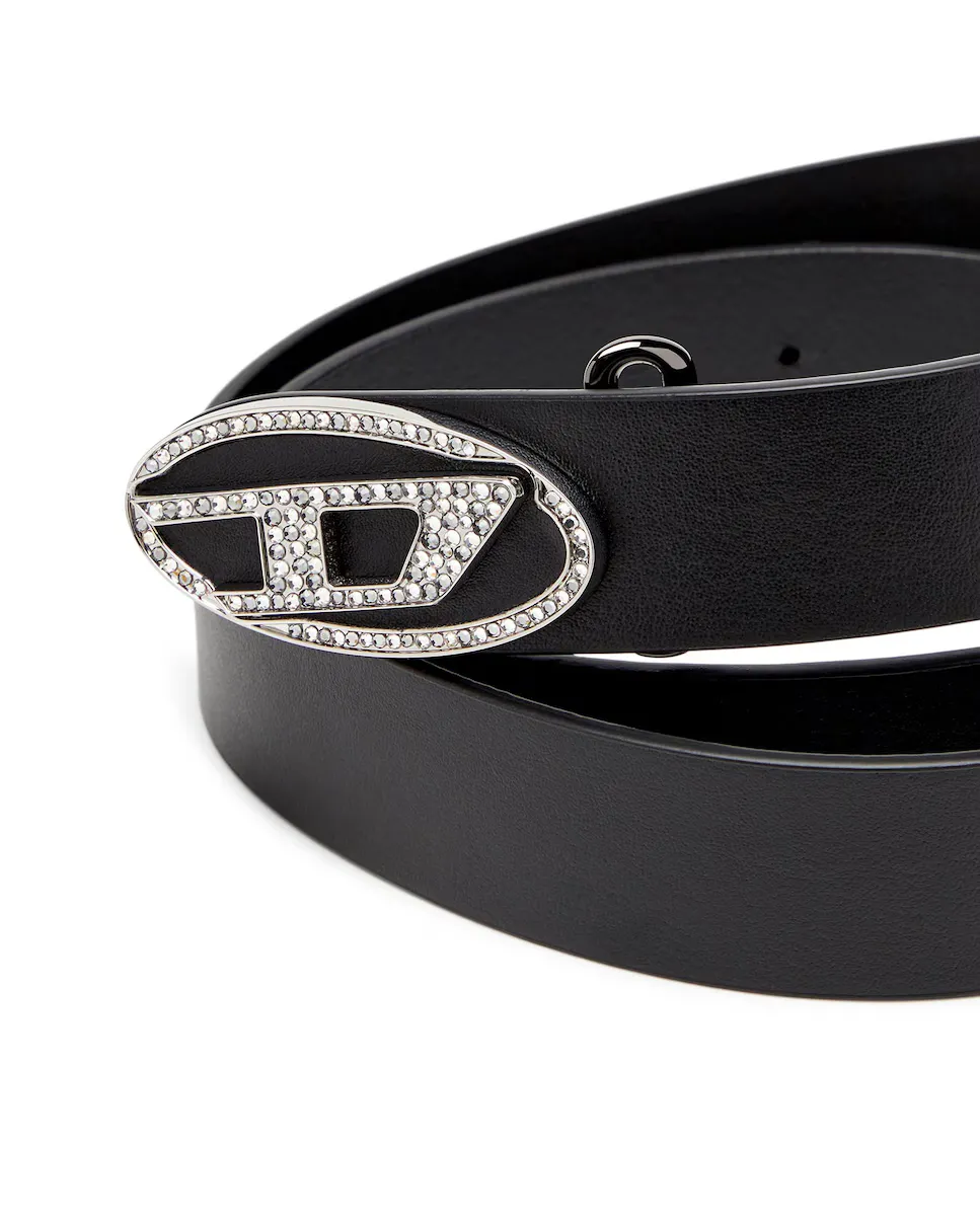 Женский кожаный ремень с хрустальной пряжкой Diesel, черный