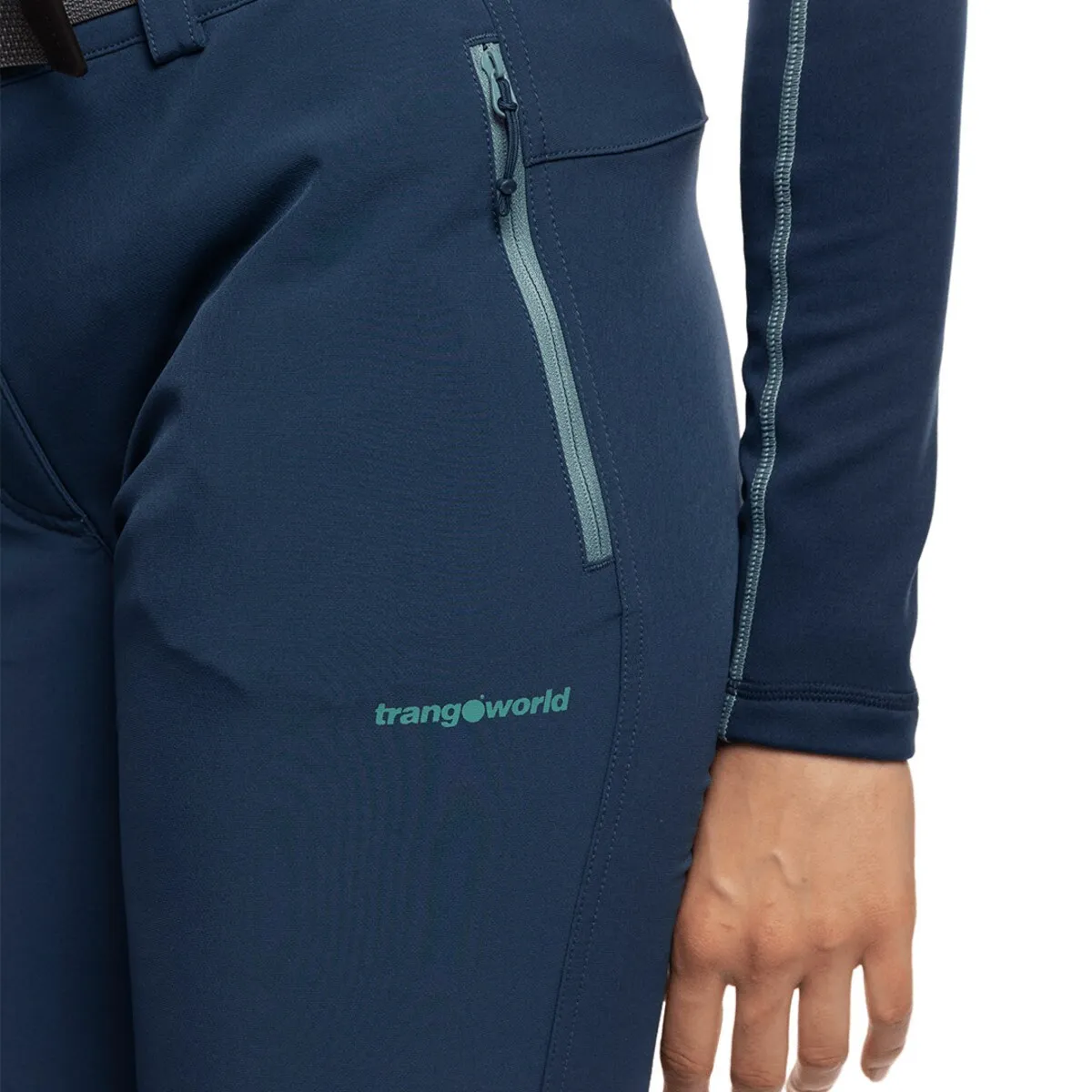 Полиэстровые штаны Free4move для походов. Резинка на талии, формированные колени, V-образный крой. Боковые карманы с видимыми молниями и горизонтальный карман на ноге. Дышащая ткань, обработка водоотталкивающими средствами без PFC.