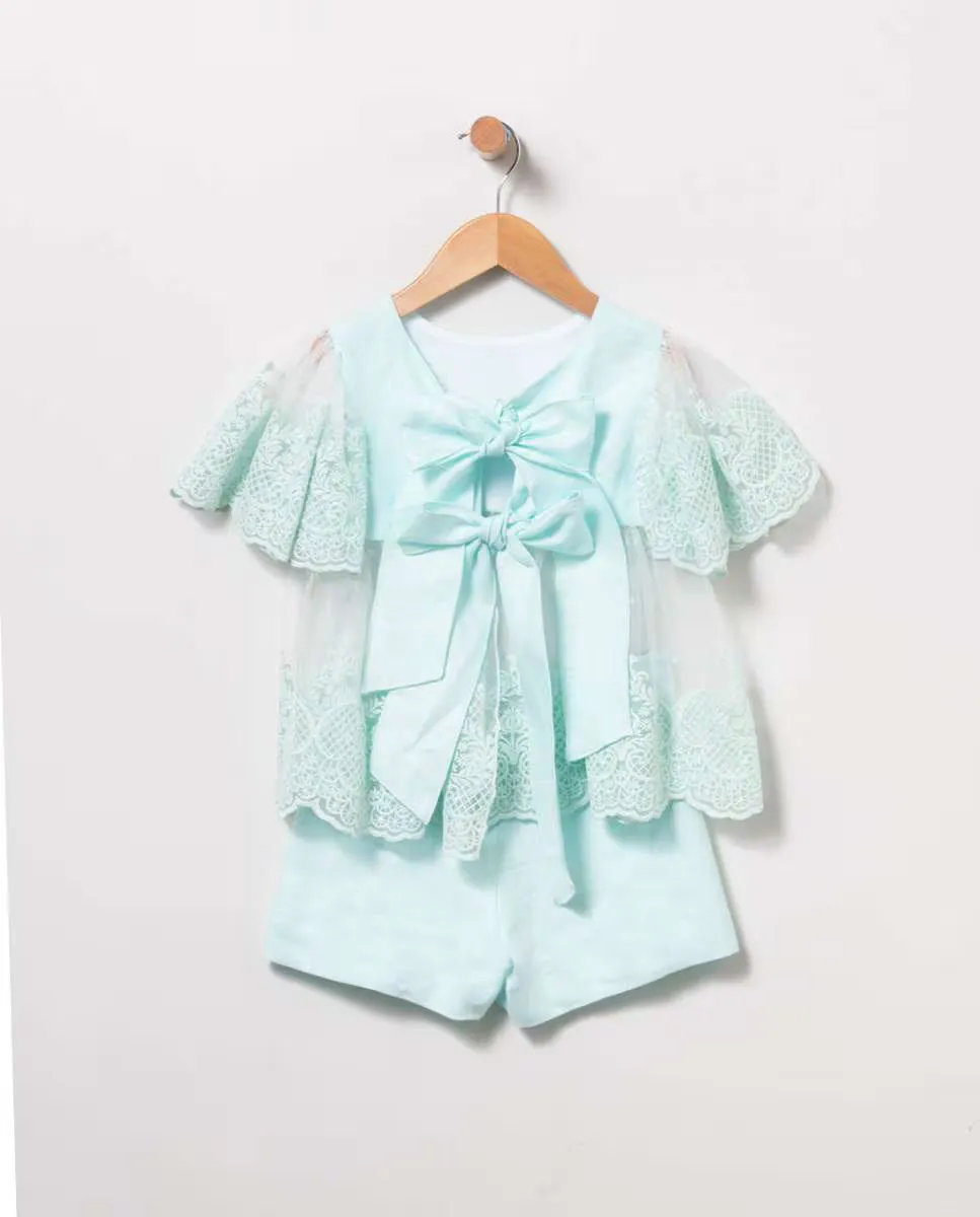 Комплект для девочки из кружевной блузки и шорт Coco Acqua, бирюзовый