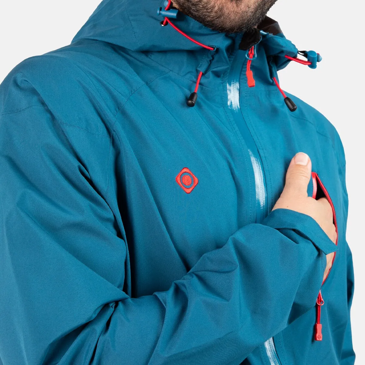 Куртка с технологией Shell Mount-Tex: структура с нанопорами, водонепроницаемая, дышащая и защитная от ветра. Водяной столб >10000 мм. Дышимость: +/- 10000 гр/м². Ткань с 2,5 слоями мембраны и термосварными швами. Капюшон фиксированный и регулируемый с помощью затяжки и внутреннего шнура. Система вентиляции в подмышках с помощью молний. Молнии водоотталкивающие. Боковые карманы на молнии. Карман на груди с молнией. Манжеты регулируемые с помощью велкро. Дно регулируемое с помощью затяжки и внутреннего шнура. Ранглан.