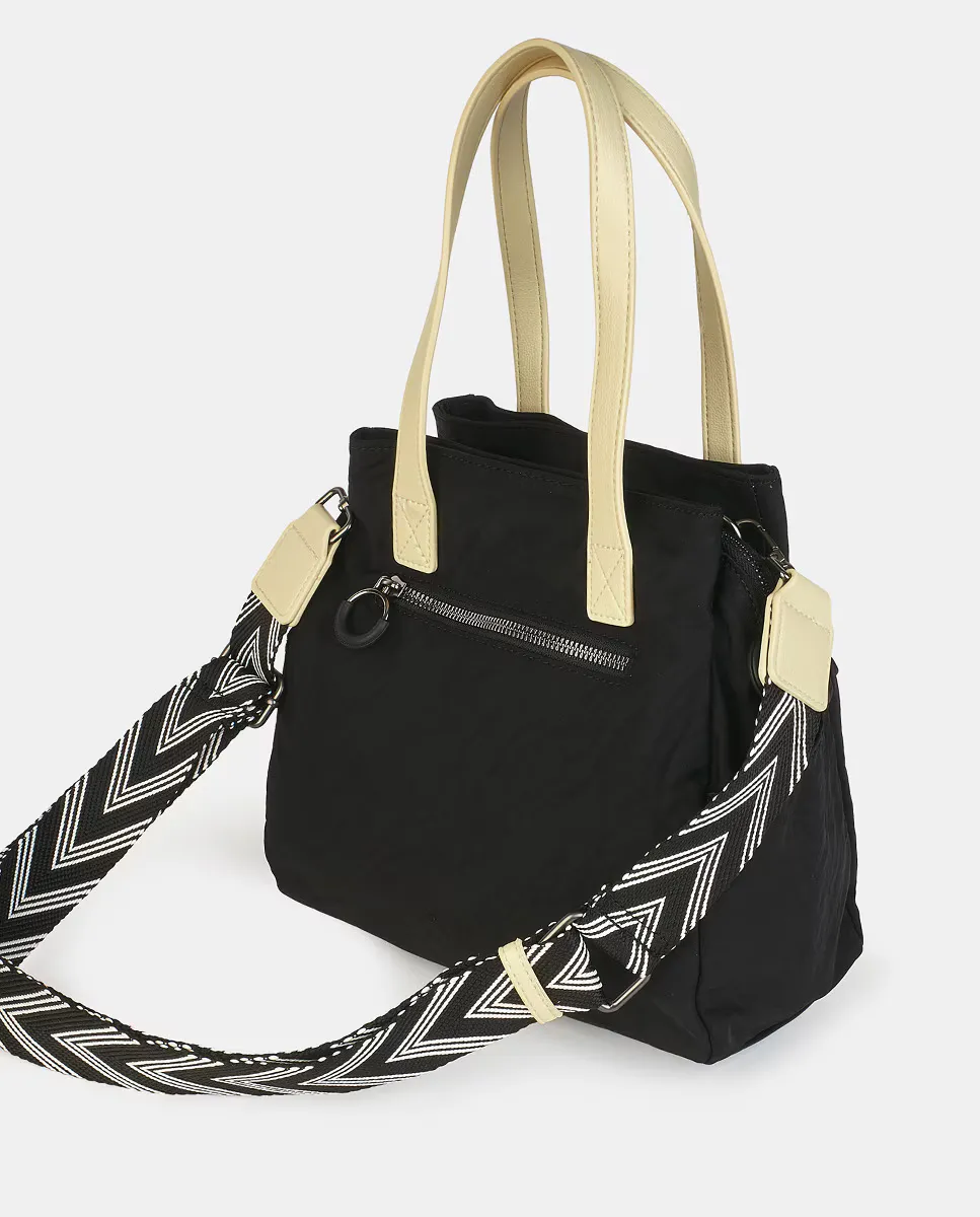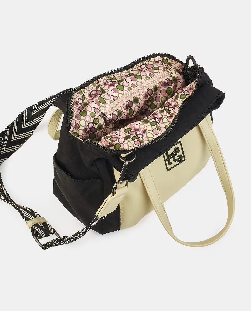 Нейлоновая и кожаная сумка зеленого цвета с застежкой-молнией. Внешний и задний карман с застежкой-молнией. Две короткие ручки и длинный регулируемый ремень, который можно снять, с карабином. Внутренний карман на молнии.