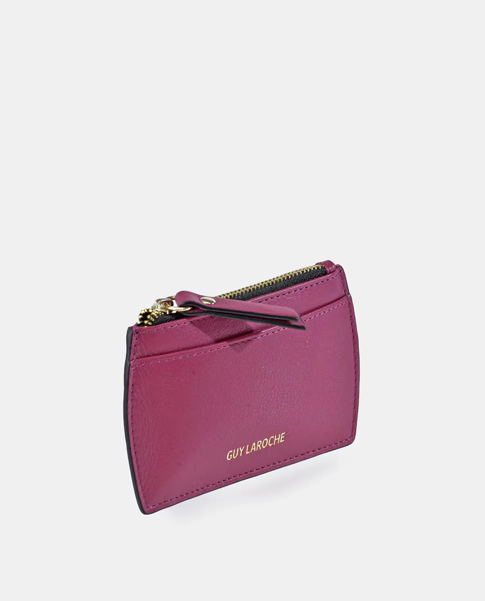 Кожаный держатель карт на молнии Guy Laroche, фуксия