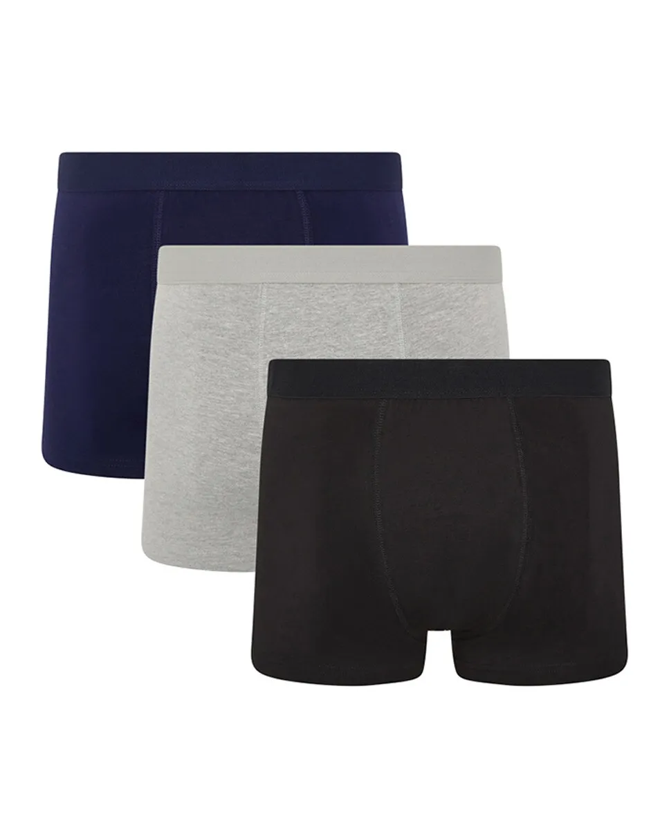 Комплект из 3 базовых боксеров, трикотажные трусы темно-синего, серого и белого цвета.