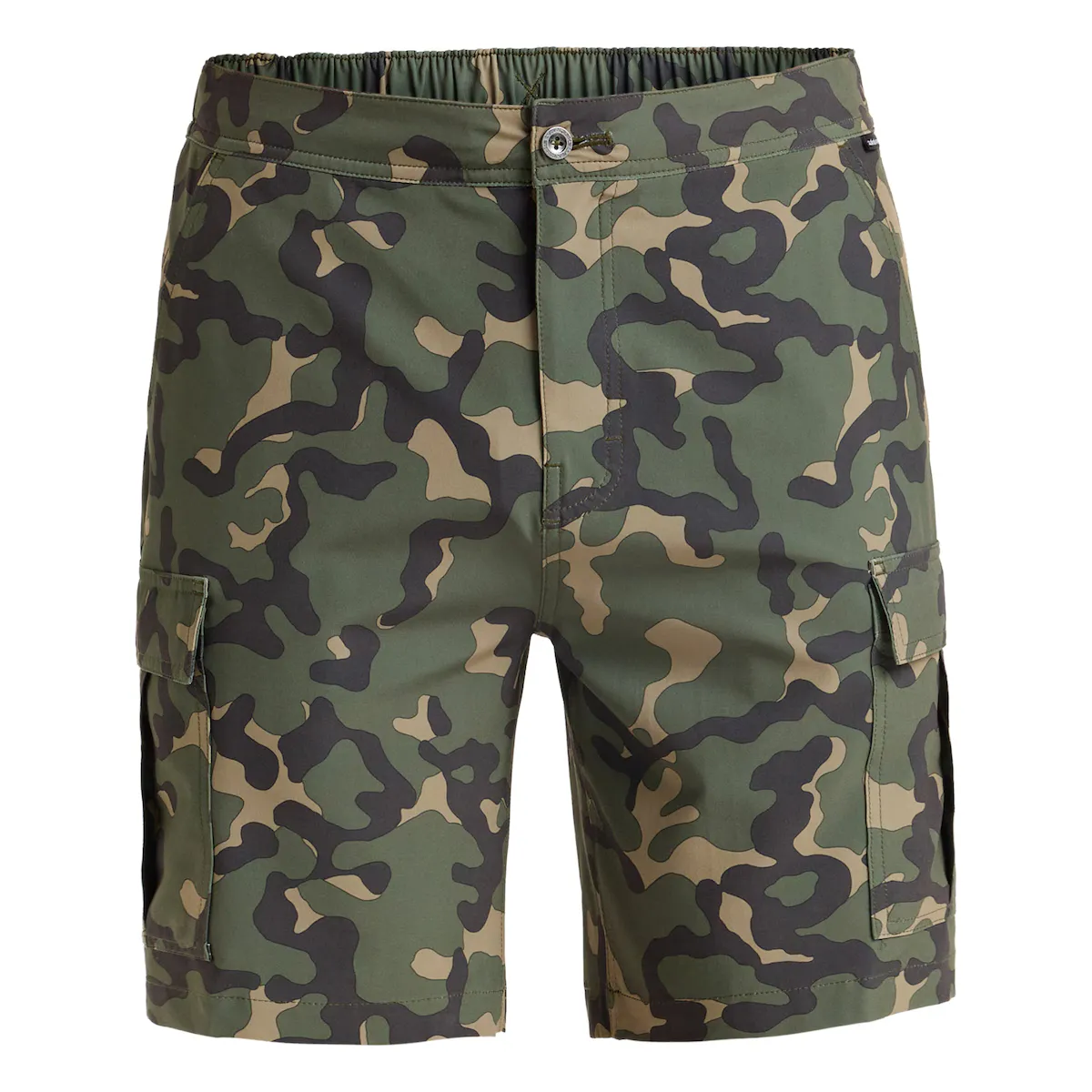 Гибридные бermuda для мужчин. Характеристики: Ткань: смесь из 92% переработанного полиэстера и 8% эластана, Пояс: фиксированный пояс, Застежка: застежка на кнопке, Карманы: боковые карманы, карманы- cargo, Длина 48 см.