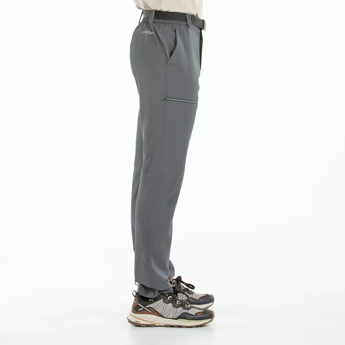 Штаны для треккинга стандартной посадки, двуслойная ткань качества Shellflex, верхние карманы и боковой карман на молнии, предформованные колени. Эластичный пояс с индивидуальным ремнем, регулируемые низы с застежкой.