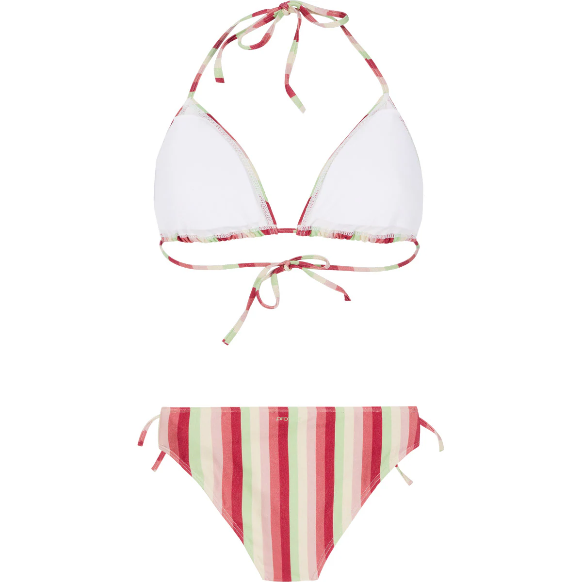 Летом привлекайте внимание с PRTMOLA от Protest. Этот эффектный комплект включает в себя красивый треугольный топ купальника с индивидуальной и поддерживающей посадкой благодаря завязкам на спине и шее и быстросохнущим съемным чашечкам. Соответствующие обычные плавки имеют красивые детали завязок по бокам. Яркий полосатый принт действительно привлекает внимание. PRTMOLA также является частью нашего обязательства делать вещи более экологичными; в процессе производства не используются ПФК.