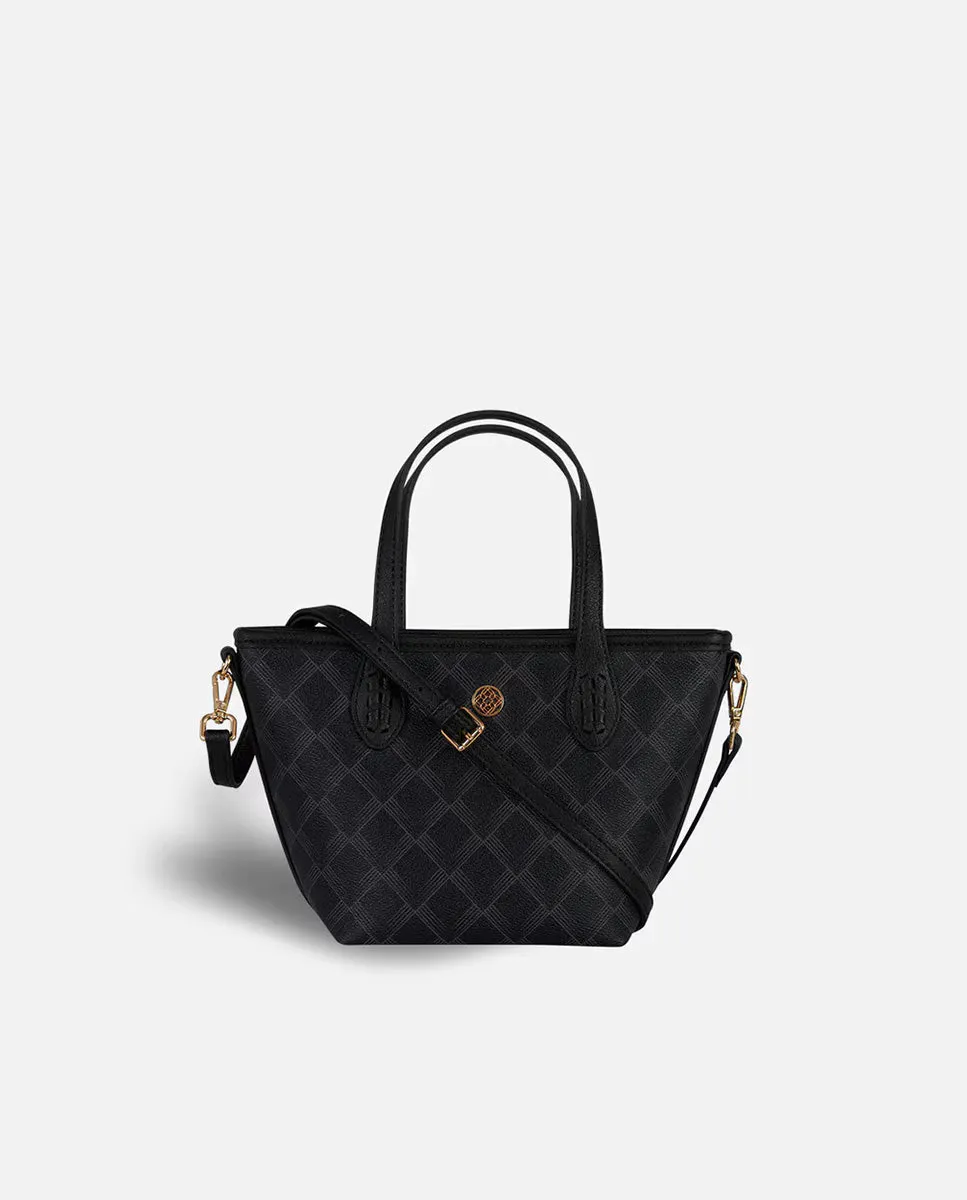 Сумка-мессенджер Tiny с принтом линии Kensington. Это самая маленькая сумка в коллекции, и она характеризуется как мини-версия культовой сумки Kensington. У нее есть молния, и ее можно носить через плечо или на руке. Сумка содержит два кольца и съемный ремень, чтобы удобно носить ее как сумку через плечо. Внутри сумки есть подкладка из полиэстера, соответствующая цвету оформления и ручки. Сумка включает в себя карман с молнией внутри. Персонализирована логотипом бренда из никеля.