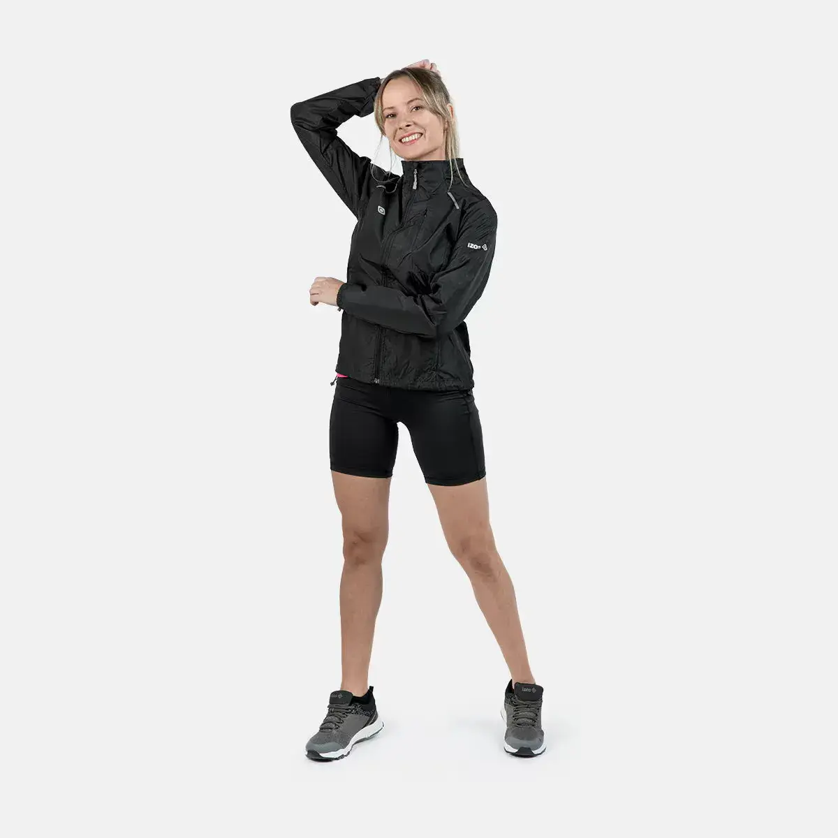 Легкая и функциональная куртка для женщин для беговых или трекинговых активностей. Ткань AWPS, DRY и Coolspeed: легкий, водоотталкивающий, дышащий, быстро сохнущий и защищающий от ветра. Приталенный крой, который адаптируется к любому движению. Анатомические рукава с эластичной прорезью для большого пальца. Вентиляция подмышками с сетчатой тканью. Внутренний эластичный пояс на нижней кромке с утяжками. Боковые карманы и карман на груди с молнией. Светоотражающие детали на спине.