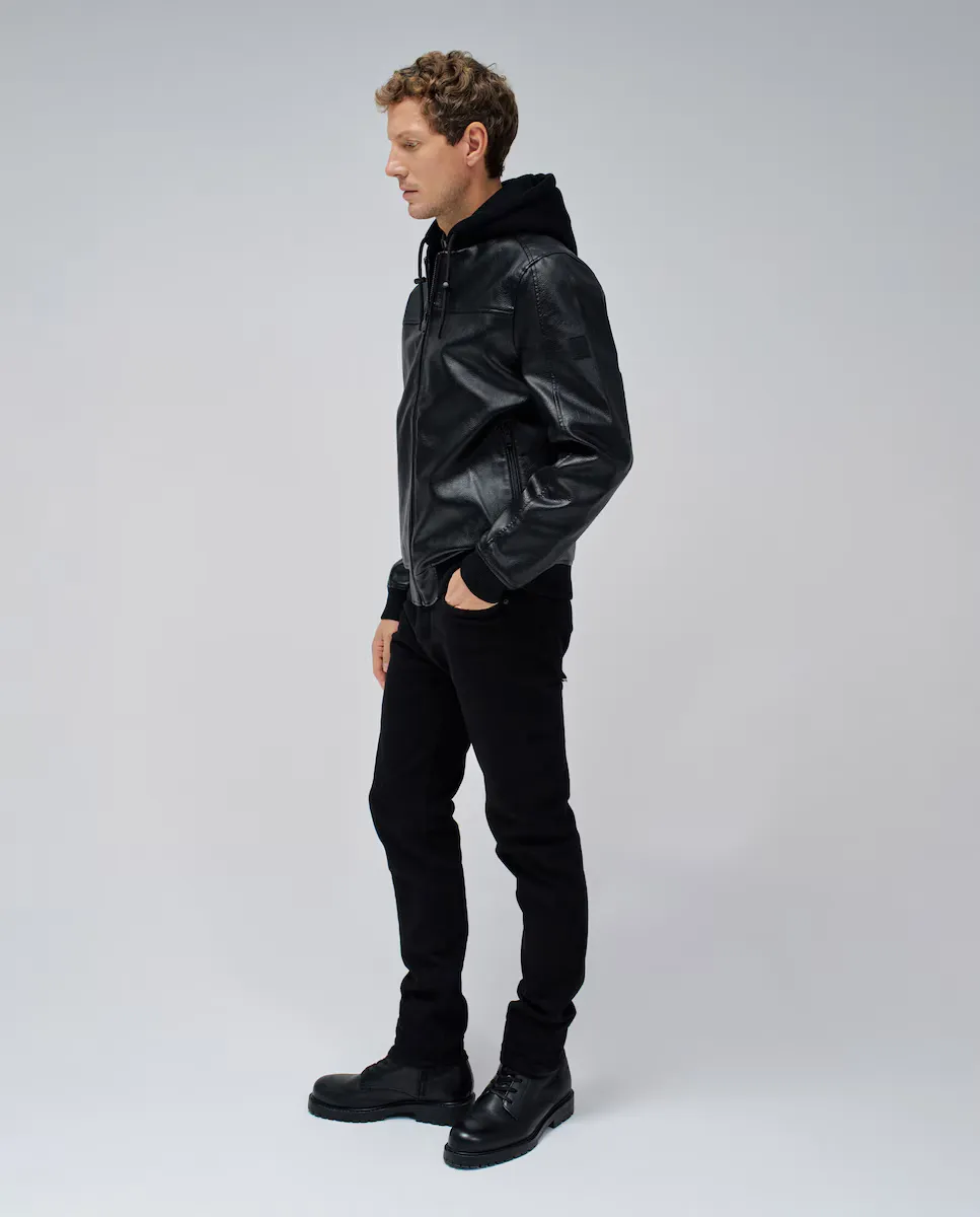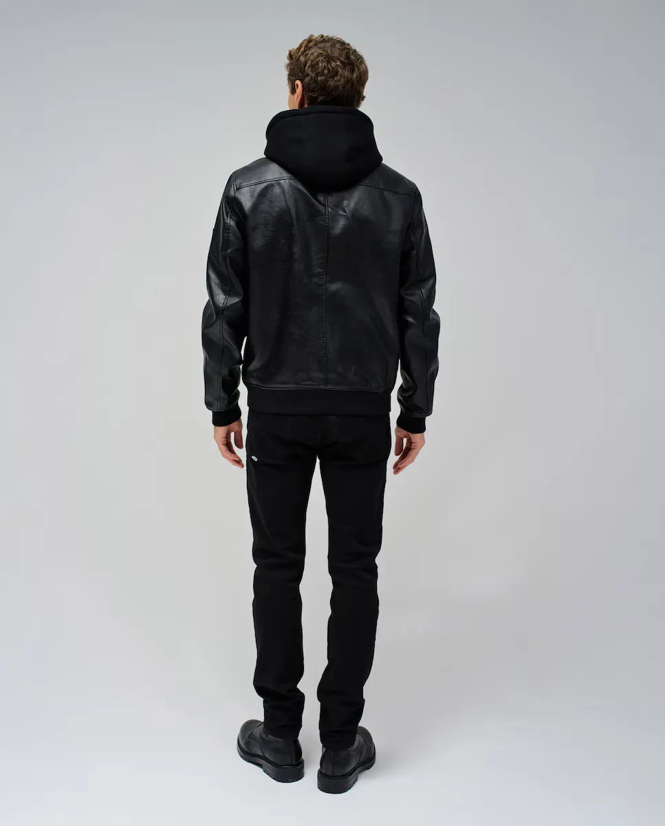 Эта бомбер-куртка с эффектом кожи идеально подходит для современного и смелого образа. С передним застежкой на молнии и съемным капюшоном для большей универсальности. Воротник со шнурком и эластичные манжеты обеспечивают комфорт и идеальную посадку. Регулярный крой делает ее незаменимой вещью для сочетания с любым стилем. Бомбер-куртка. Эффект кожи. Передний застежка на молнии. Съемный капюшон. Воротник со шнурком. Регулярный крой. Длинные рукава с эластичными манжетами.