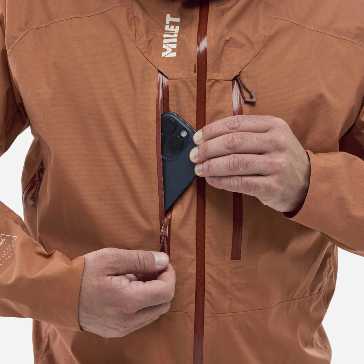 Эта туристическая куртка из материала Dryedge обеспечивает водонепроницаемость и высокую воздухопроницаемость во время активных выездов. Она разработана для максимальной функциональности и комфорта с легким эластичным материалом, рукавами-регланом и двумя карманами на груди, которые обеспечивают свободу движений. Боковые вентиляционные молнии остаются доступными с рюкзаком. Изготовленная из переработанного полиамида, ее структура рипстоп придает ей высокую прочность.