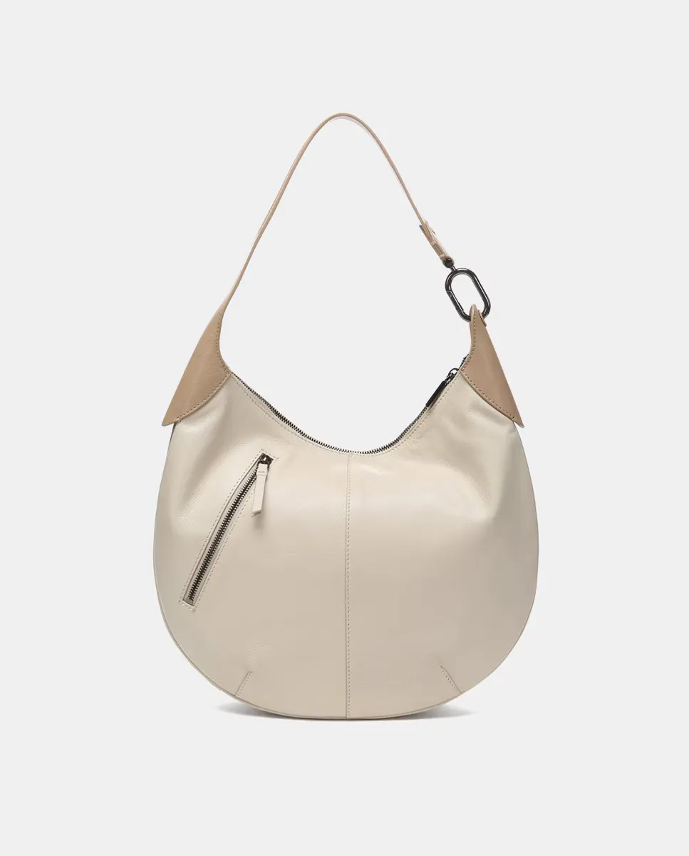 Сумка через плечо в стиле хобо, выполненная из кожи премиум класса. Ее минималистичный и изогнутый дизайн делает ее универсальным аксессуаром, который дополняет любой образ. Идеально подходящая для повседневного использования, эта сумка сочетает в себе функциональность и вне времени дизайн. Ее просторный внутренний отсек обшит и идеально организован для максимальной организации. Верхний замок на молнии. Металлический элемент с логотипом бренда на передней стороне.