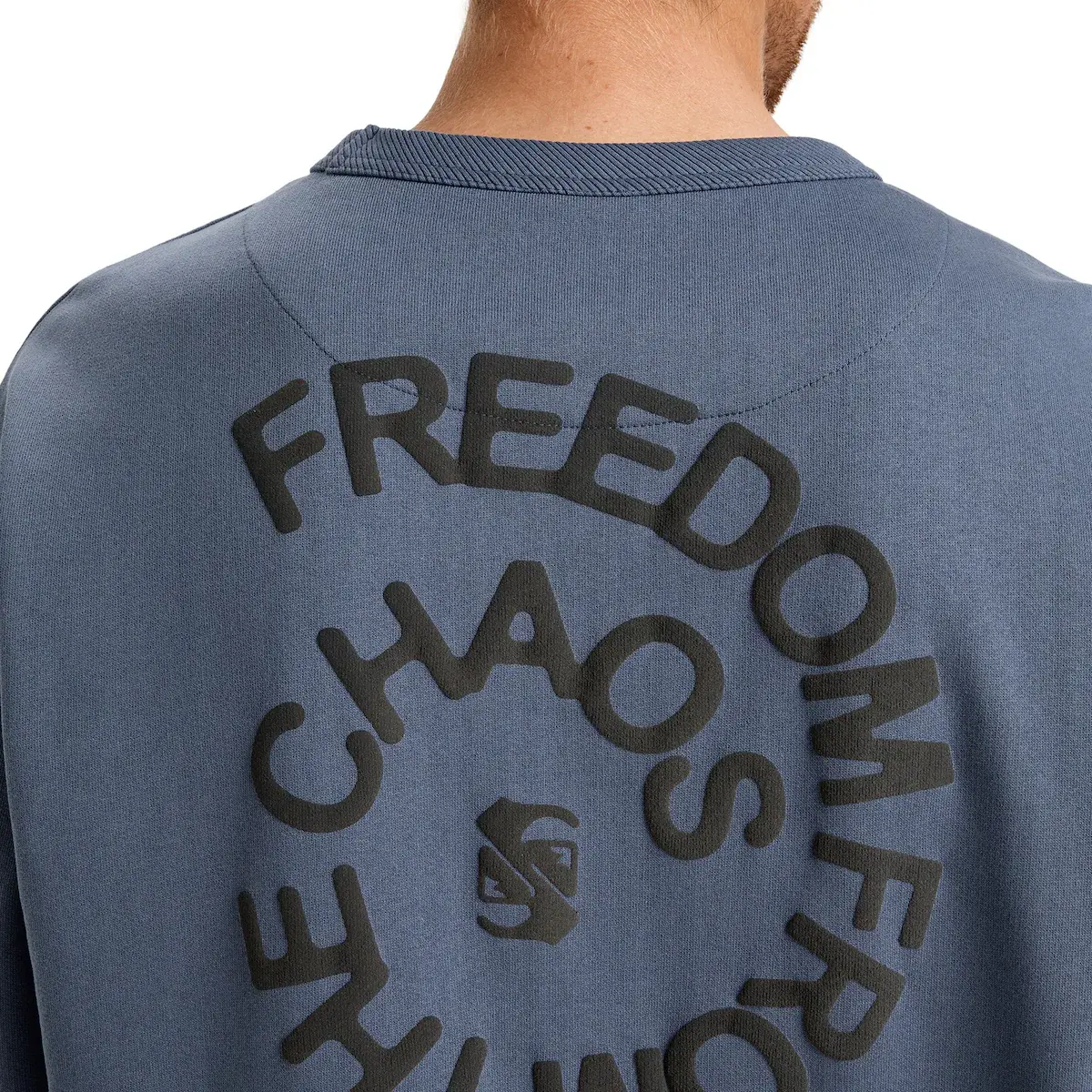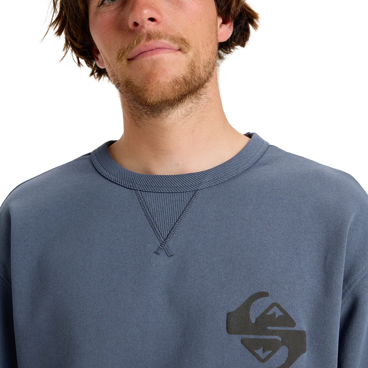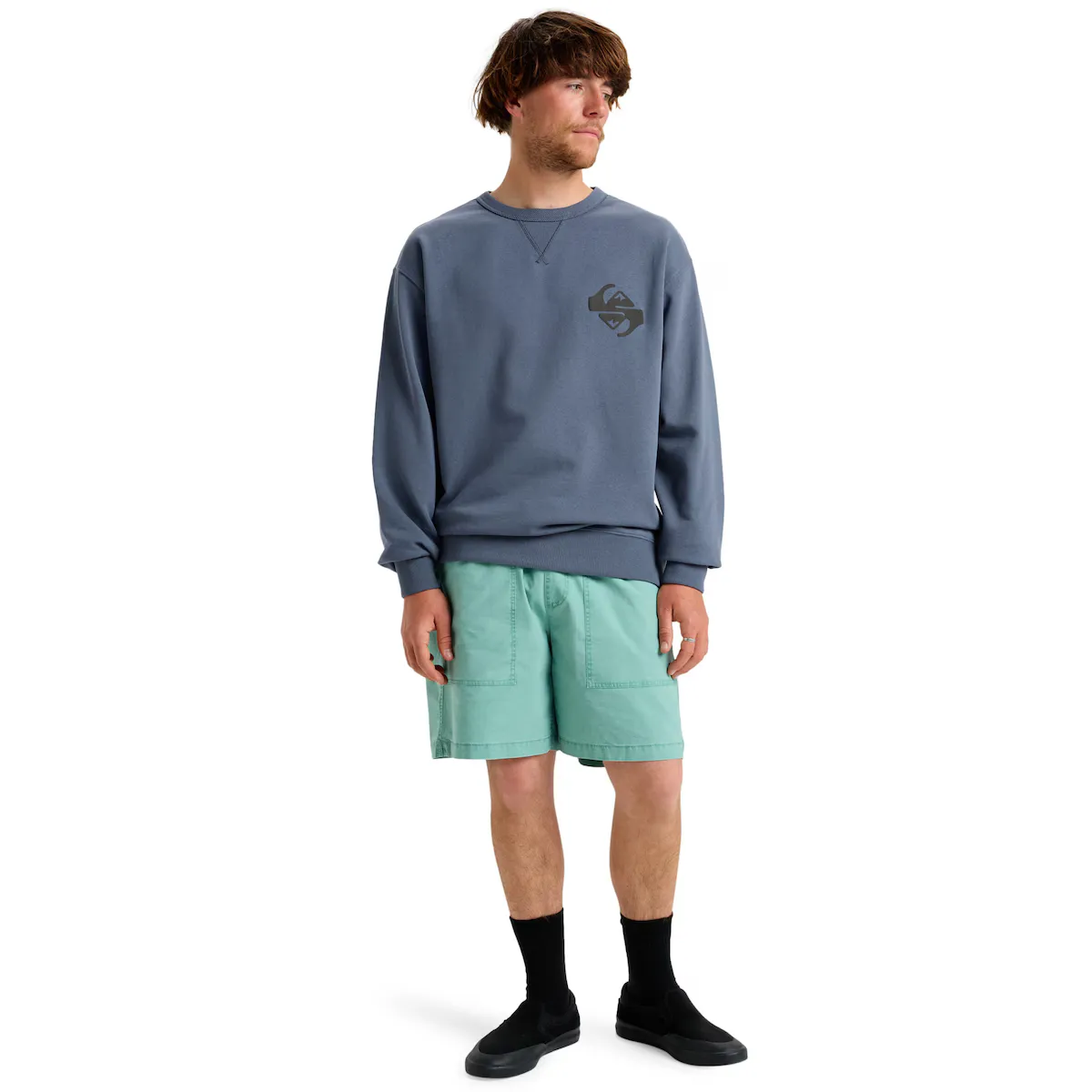 Футболка с круглым вырезом для мужчин. Характеристики: Тип: Флис с круглым вырезом, Ткань: 100% органический хлопок (260 г/м²), французская терка, Прилегание: Свободный крой, Вырез, манжеты и нижний подол с кантиком, Вышитое искусство на груди в цветовой комбинации Summer Melon, Напечатанное искусство с пузырьковой краской на груди и спине в цветовой комбинации Vintage Indigo, Упаковка из переработанных тканевых ярлыков Quiksilver, Изготовлено в Португалии.