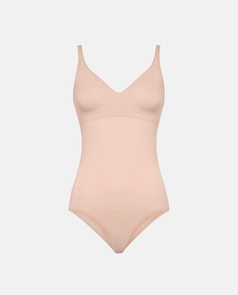 Для идеального тела. Без необходимости в дополнительном бюстгальтере инновационные силиконовые полоски обеспечивают идеальную поддержку формированной двойной чашке и бретелям. Новая версия материала cotton contour формирует живот, талию, бедра и ягодицы почти незаметно. Бархатные отделки и проклеенные боковые швы подчеркивают его чистую легкость. Легкий эффект моделирования / Ширина бретелей: 10 мм, 12 мм для больших размеров / Хлопковая подкладка.