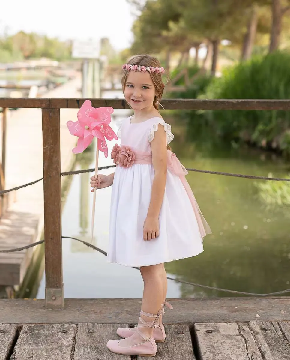 Платье для девочки из тюля с поясом цвета магнолии Coco Acqua, розовый