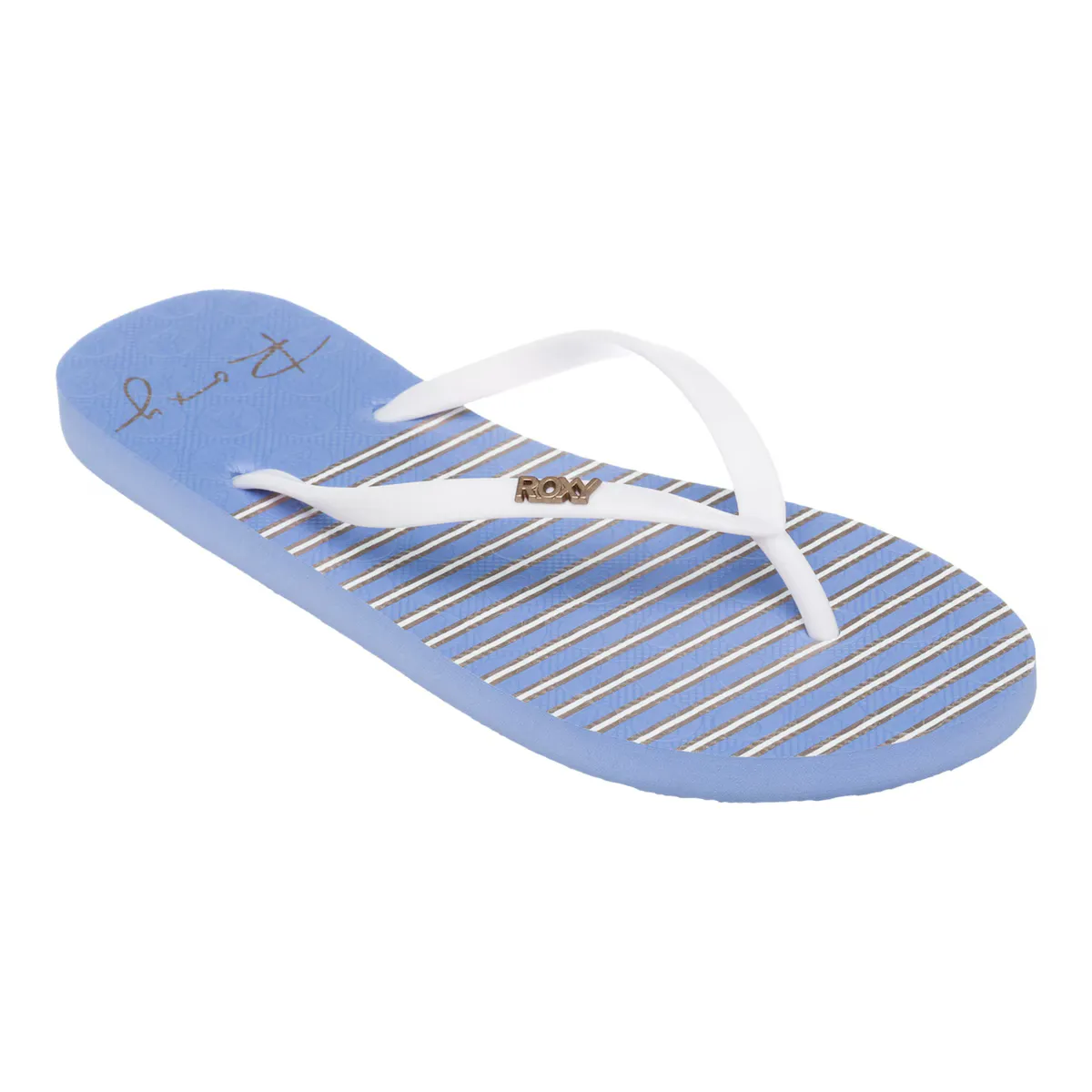 Сандалии для женщин. Характеристики включают: верх из резины с металлическим логотипом ROXY, текстурированная резиновая стелька с графикой и наружная подошва: резиновая подошва с винтажным принтом ROXY.