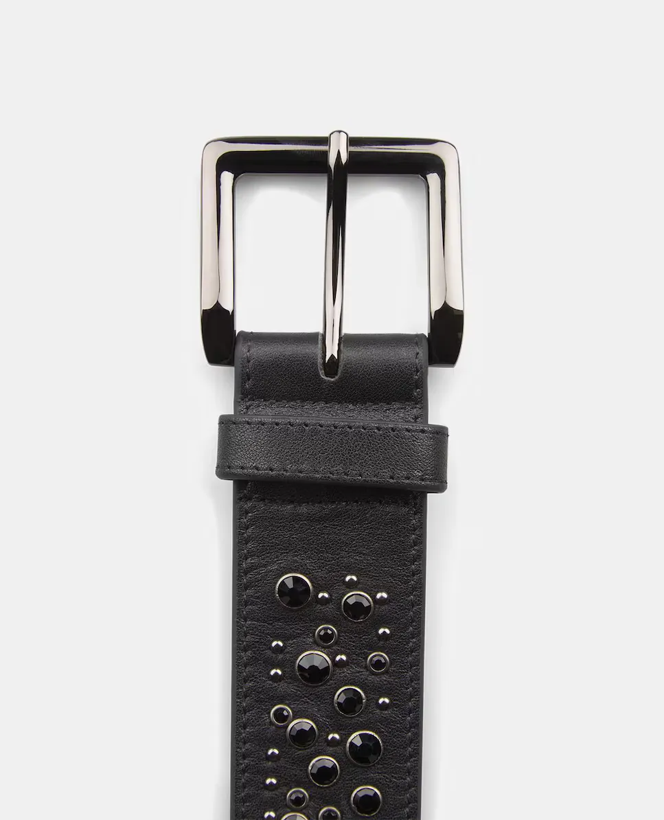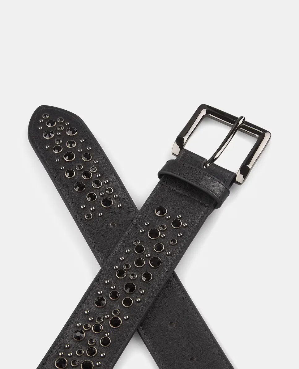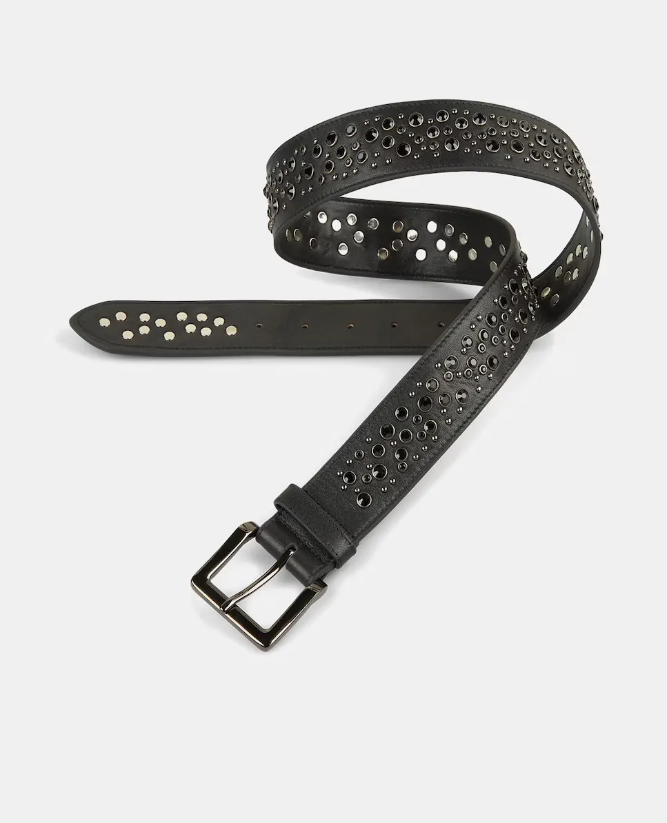 Женский кожаный ремень с бусинами Alma en Pena, черный