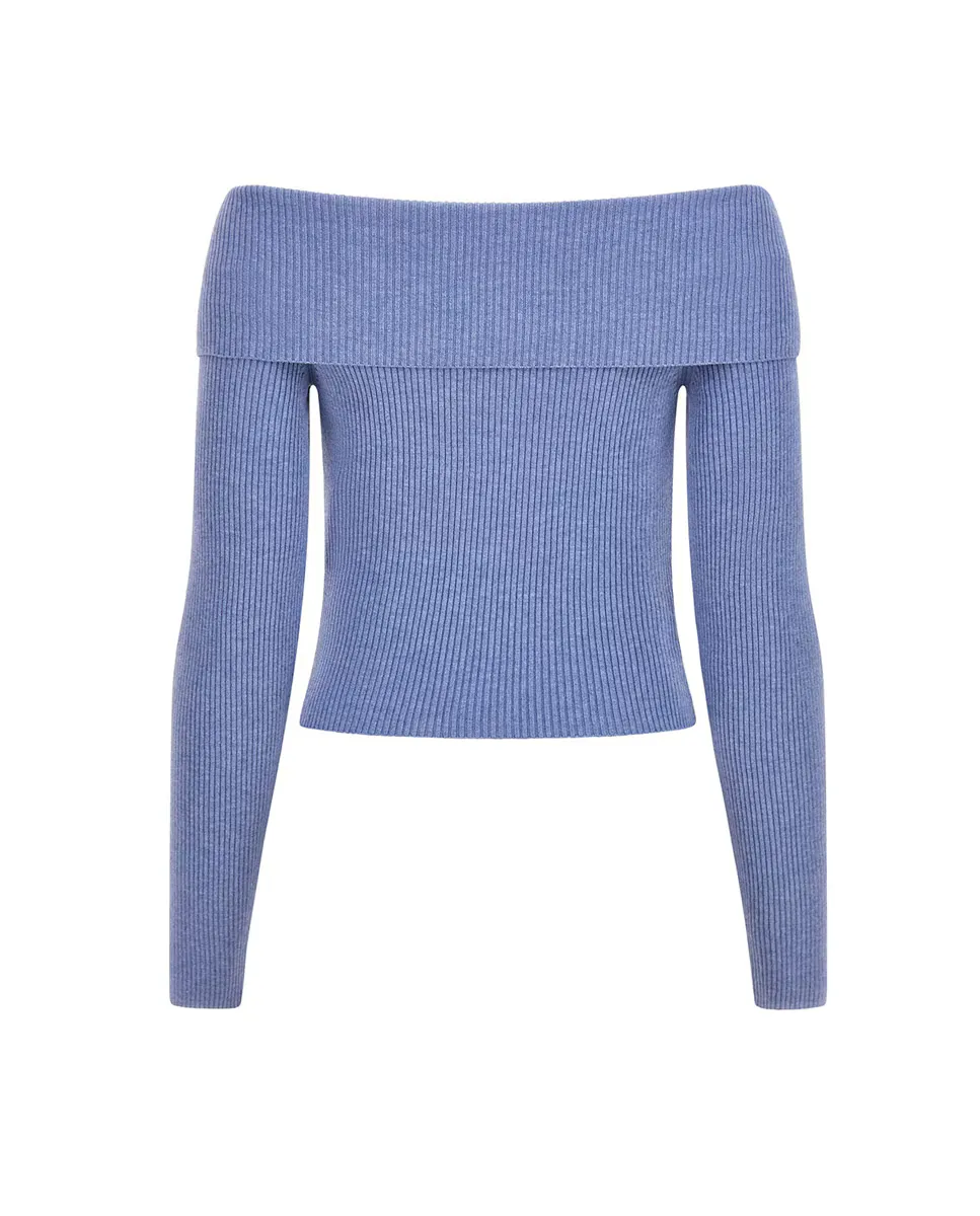 Джемпер с длинными рукавами и открытыми плечами, деталь с мини-логотипом.