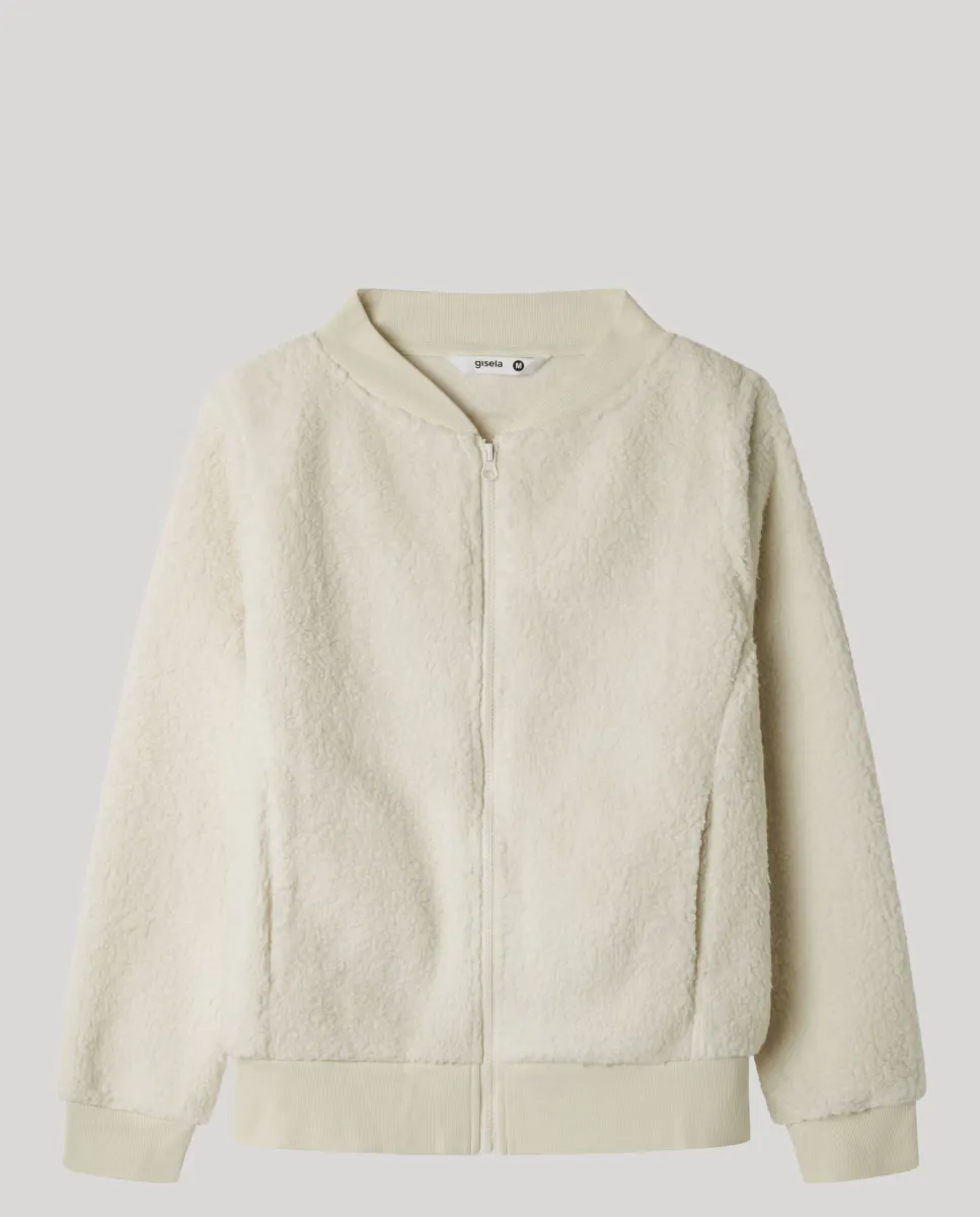 Куртка-бомбер из овечьей шерсти и флиса, с боковыми карманами и молнией.