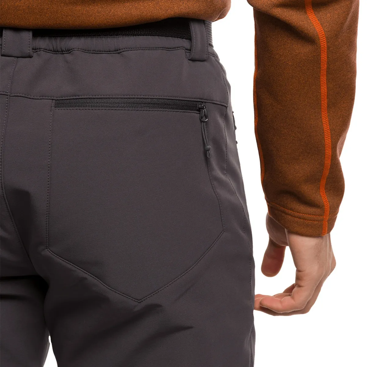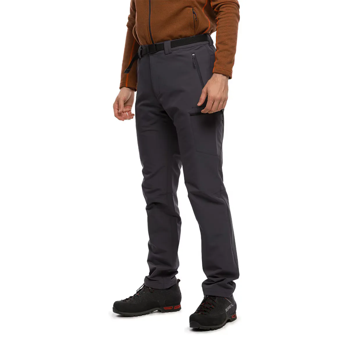 Брюки, изготовленные из биэластичного полиэстера, с регулируемым поясом, предформированными коленями, дышащие, с обработкой для водоотталкивающего эффекта, идеальные для гор и пешеходных прогулок.