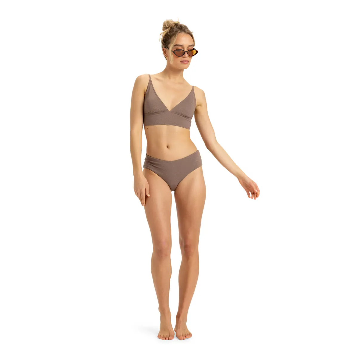 Женские купальники средней степени покрытия. Характеристики включают: Коллекция: Коллекция Ласка, Материал: эластичная мягкая и прочная ткань люрекс, смесь 78% переработанного нейлона, 9% нейлона, 7% металла, 6% эластана с текстурой, Пояс: низкая посадка, Размер: низкая посадка, Застежка: фиксированная застежка, Покрытие: умеренное покрытие, Бренд: резиновая пластина ROXY, Другие детали: вырез и спина в форме V и широкий бок.