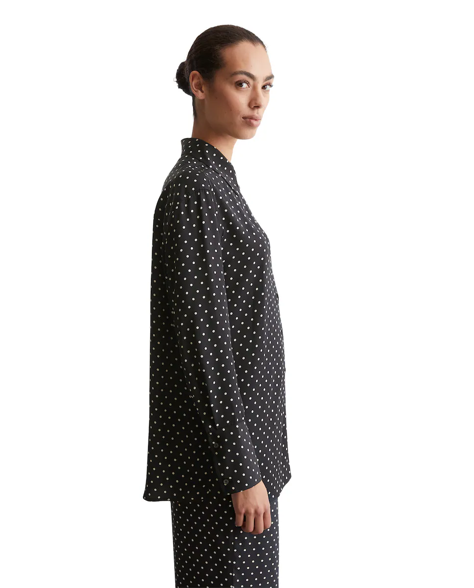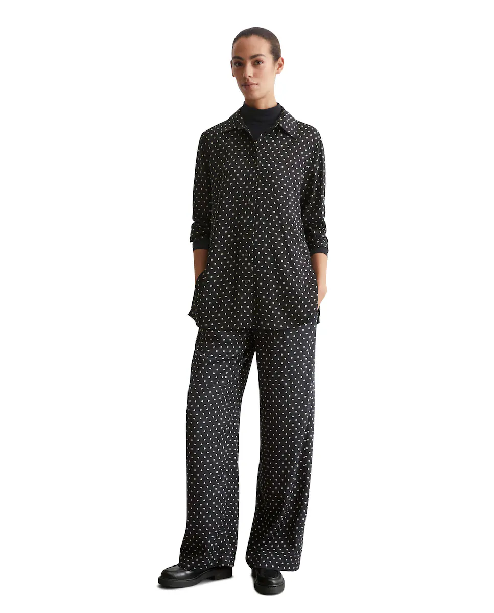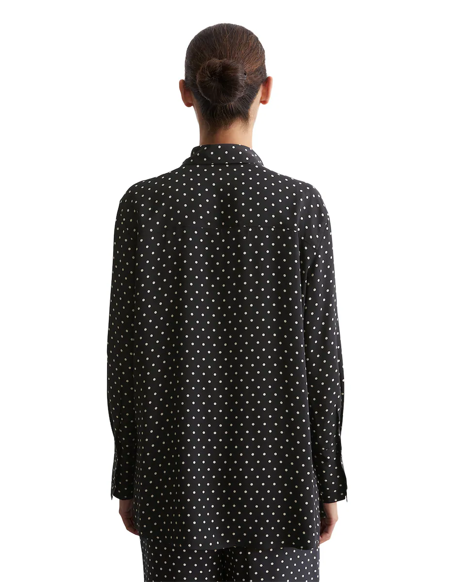 Современная и непринужденная элегантность: длинная рубашка свободного кроя, изготовленная из вискозы высокого качества с тонкой и элегантной текстурой саржи. Она оснащена классическим воротником Кент, полной застежкой на пуговицах и характерными рукавами с широкими манжетами. Низ имеет прямой крой и высокие разрезы по бокам. Вечная и универсальная модная тенденция, которая олицетворяет уверенность в стиле и сдержанность моды.