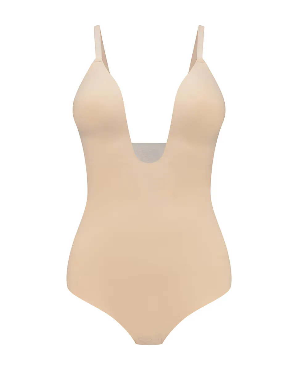 Глубокий утягивающий боди с вырезом Bye Bra, бежевый
