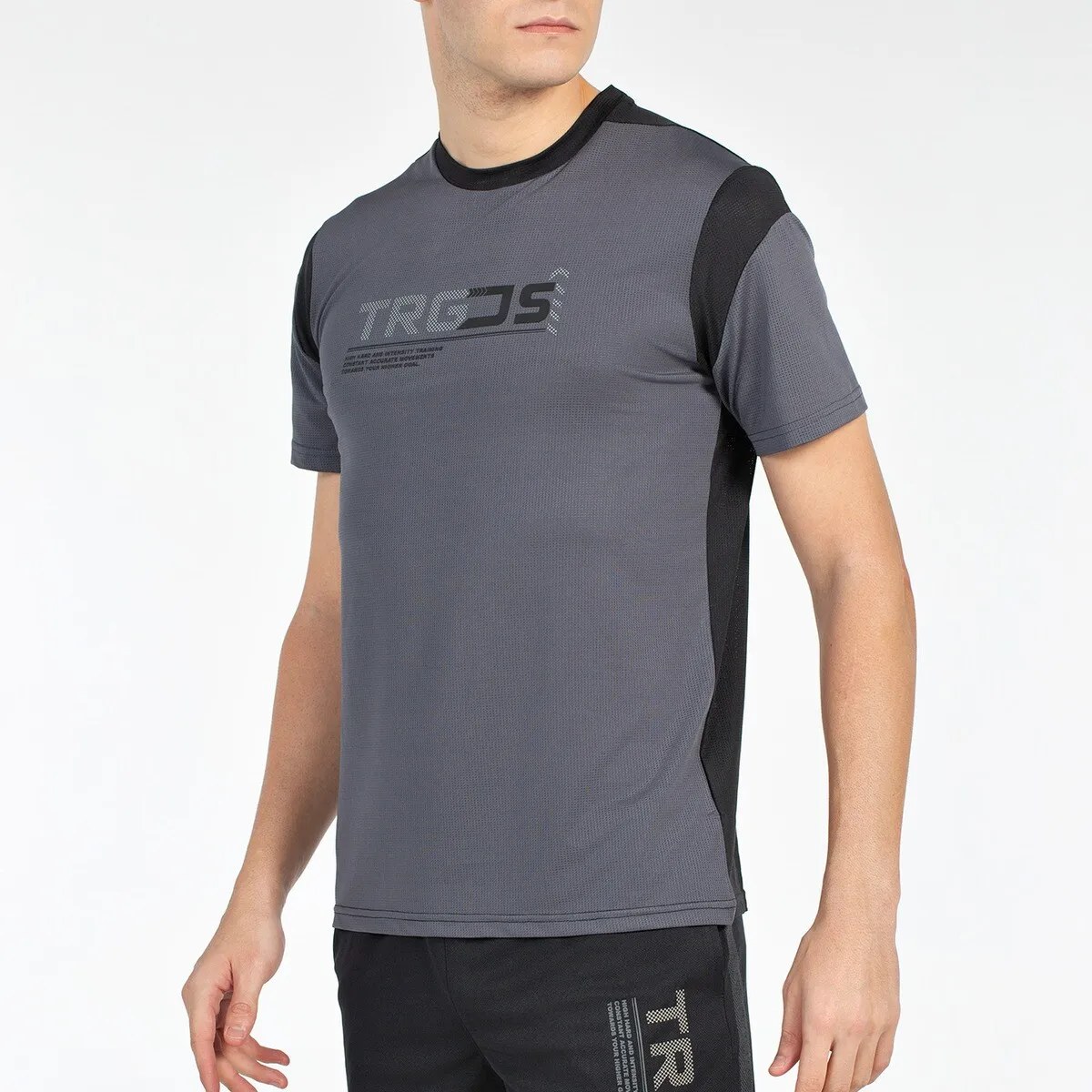 Футболка для тренировки из эластичного полиэстера с сетчатой тканью.