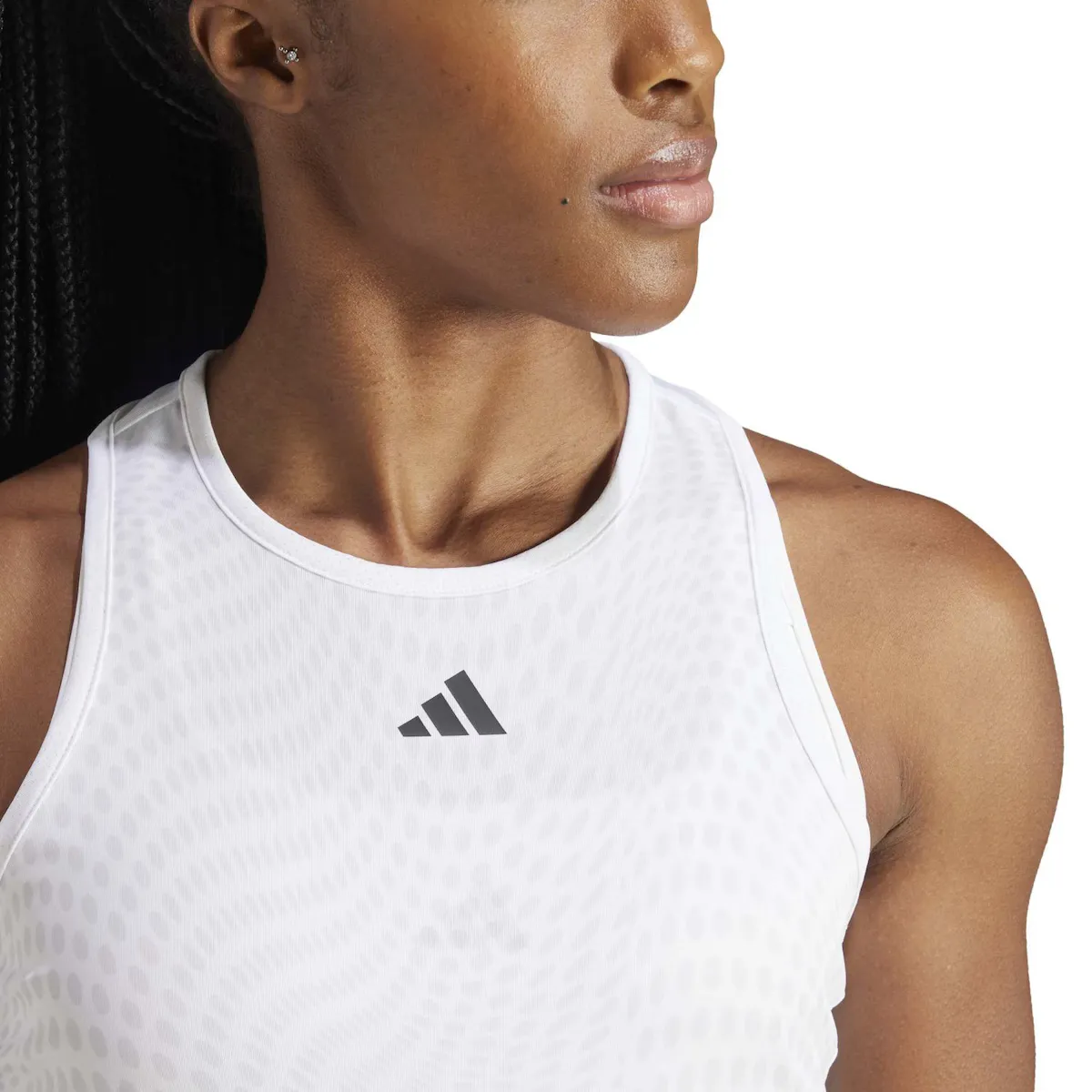 Представляем жилетку Club Tennis Graphic: новую версию классического стиля клубного тенниса для современной женщины. Эта спортивная майка приталенного кроя, выполненная из 100% переработанного полиэстера, украшена графикой, вдохновленной теннисом, и имеет воздухопроницаемую сетчатую панель в нижней части спины. Оснащенная технологией AEROREADY и конструкцией Primegreen, она обеспечивает оптимальный комфорт и устойчивость при каждом ударе.