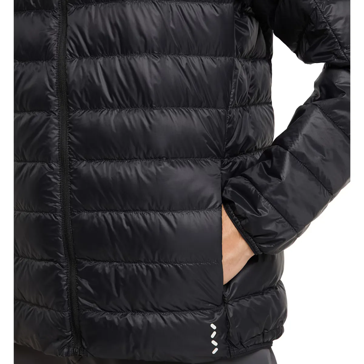 Больше не придется делать concessions! Этот пуховик легко сжимается и сохраняет тело теплым и сухим, не утяжеляя вас. Идеально подходит для активных занятий в условиях переменной погоды. Изготовлен из сверхлегкой переработанной ткани, устойчивой к разрывам, и с водоотталкивающей уткой, которая остается сухой до 10 000 минут после контакта с водой. Включает два кармана на молнии и светоотражающие элементы безопасности.