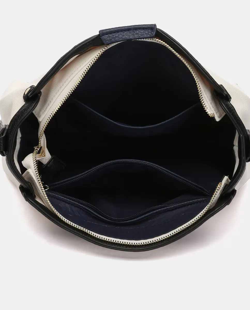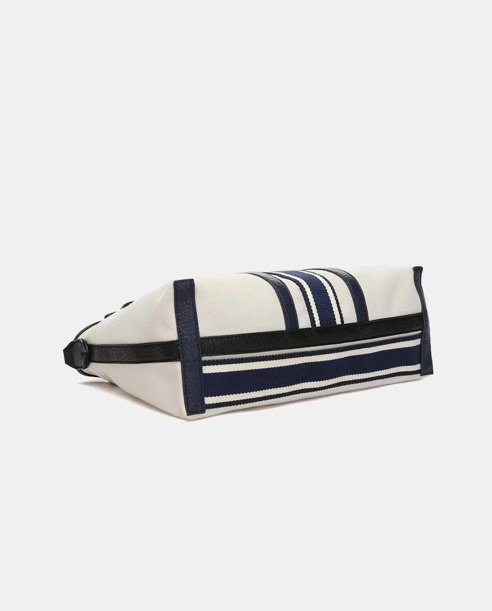 Женская сумка через плечо, изготовленная из переработанных тканей. Легкий и плавный дизайн с явным средиземноморским влиянием и выраженным морским стилем. Кэжуал стиль, она станет идеальной спутницей для весенних и летних дней. Внутри она просторная и имеет прочное дно. Ее перекрестная ручка регулируется. Верхняя часть застегивается на молнию. На передней стороне, на небольшом патче, можно увидеть логотип бренда.