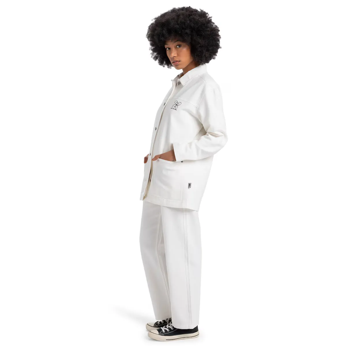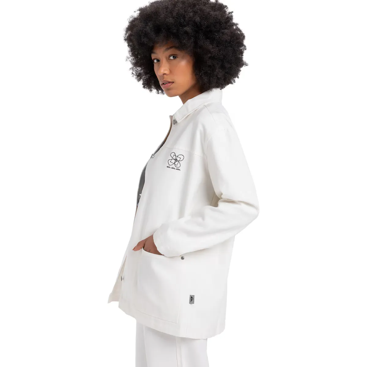 Рабочая куртка для женщин. Особенности: Коллекция: коллекция Global Heat, Ткань: хлопковая канва [280 г/м2], Крой: прямой крой средней длины, Рукава: длинные рукава, Внутренняя ткань: поплиновая ткань из хлопка, Карманы: накладные карманы в центре передней части, Застежка: центральная передняя застежка с высокими пуговицами, Бренд: вышивка сезонного логотипа на груди и тканевая бирка Quiksilver на боковом шве.