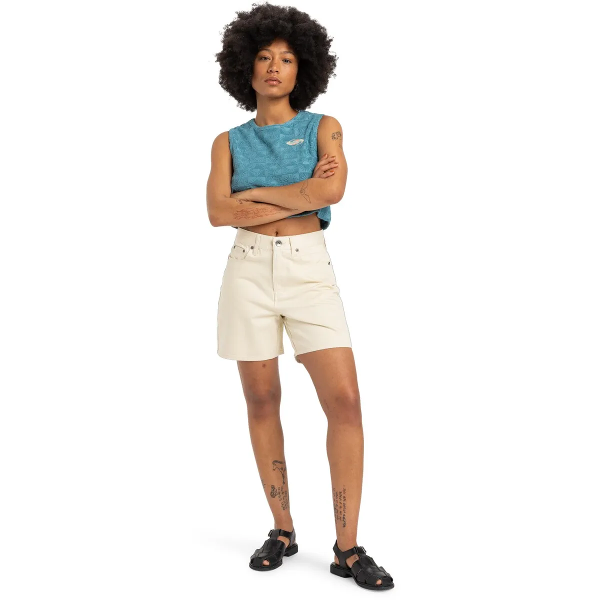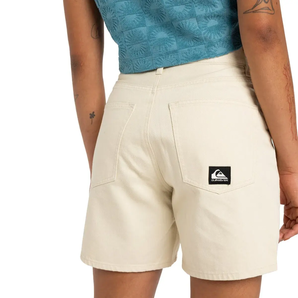 Короткие с 5 карманами для женщин. Особенности включают: Коллекция: Essentials, Ткань: 100% органический хлопковый холст (326 г/м2), стирка: стирка в изделии, Крой: кроя мами, Застежка: металлические пуговицы, Застежка спереди с металлической молнией, Карманы: боковые карманы, задние карманы, Бренд: упаковка из переработанных ярлыков Quiksilver, Другие особенности: пояс с петлями для ремня и Made Better.