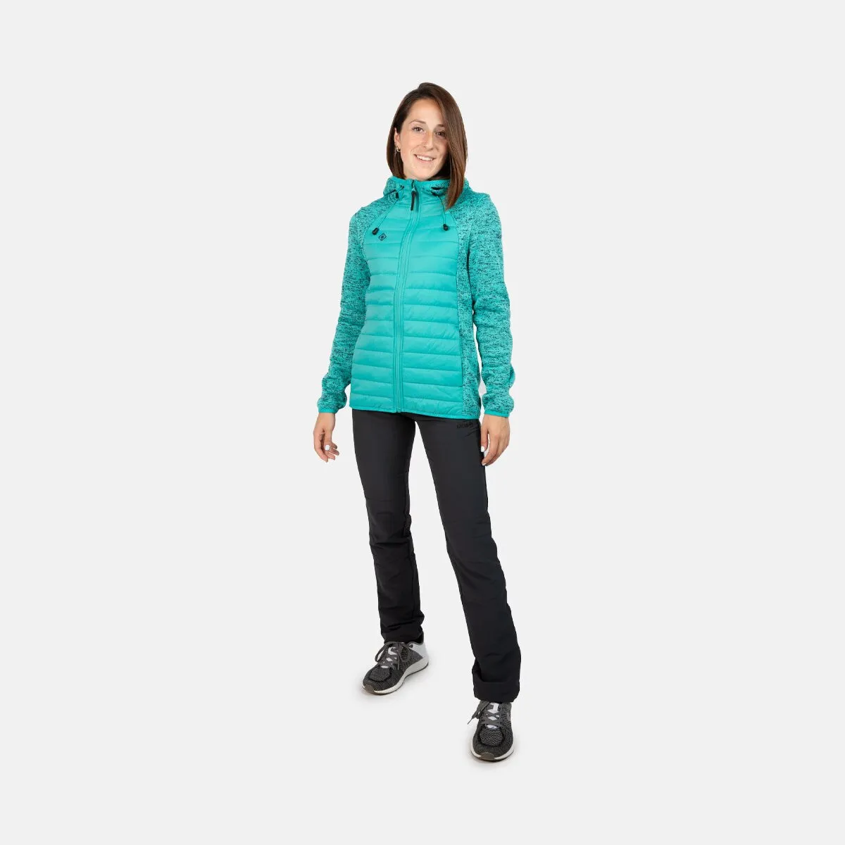Модель доступна с фиксированным капюшоном. Полярная куртка из комбинации трикотажного материала с передними и задними панелями, заполненными Mount-loft: с пустотелыми волокнами внутри, ветро- и водоотталкивающая. Теплая, дышащая, эластичная и ветрозащитная. Плоские швы. Фиксированный капюшон. Внутренняя часть с начесом. Передняя молния с планкой. Боковые карманы с молнией и планкой. Полусвободный крой.