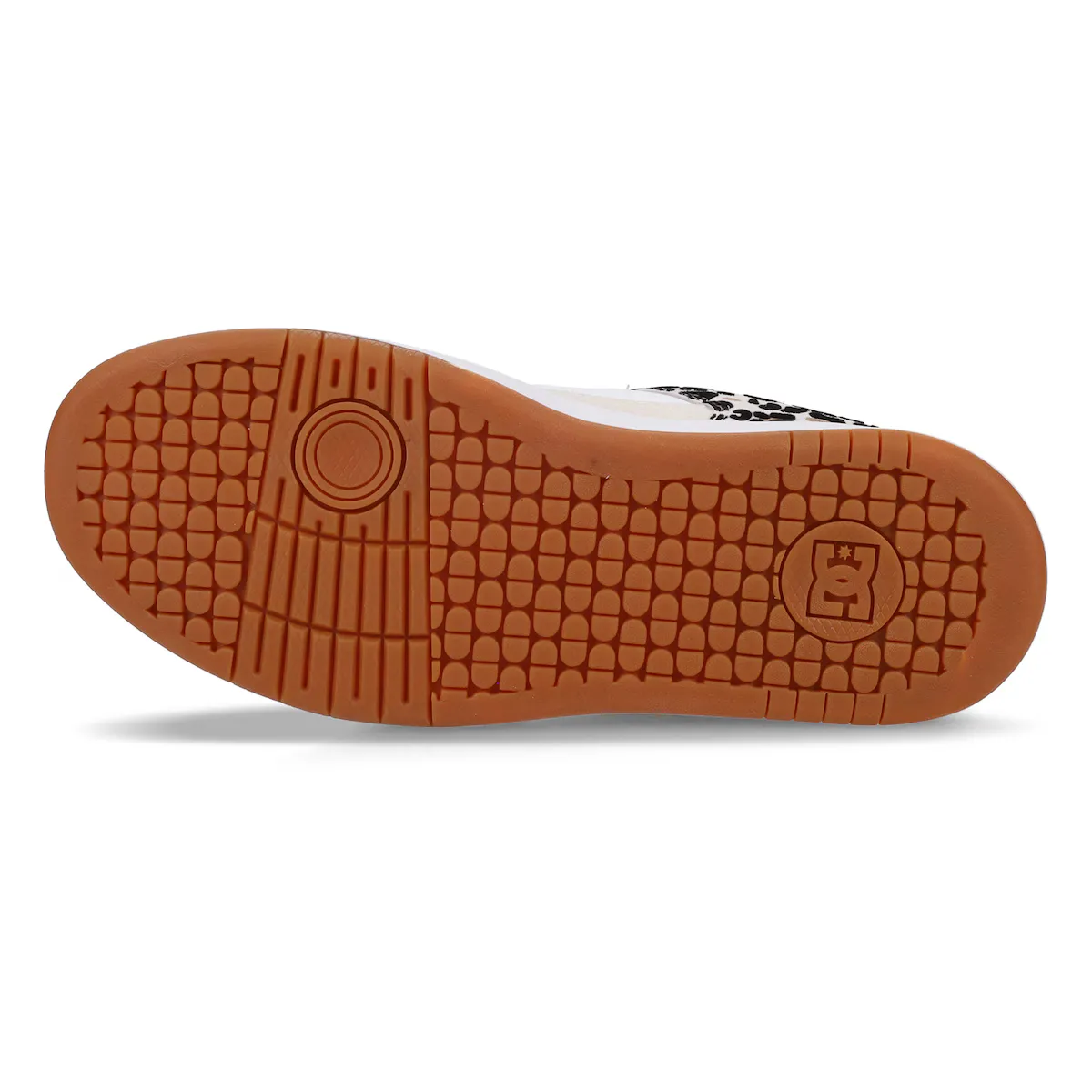 Кроссовки с принтом для женщин. Характеристики включают: Материал: верх из замши, нубука, кожи или сетки (в зависимости от модели), Подошва: резиновая подошва, устойчивая к износу, Подкладка: сетчатая подкладка для большего комфорта, Стелька: EVA-стелька, Об marca: дизайн Pill Pattern DC на подошве и Дополнительные характеристики: воротник и язычок с мягкой подкладкой из пены для большего удобства.