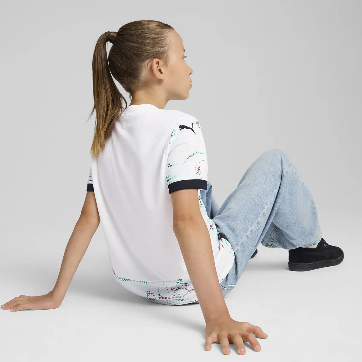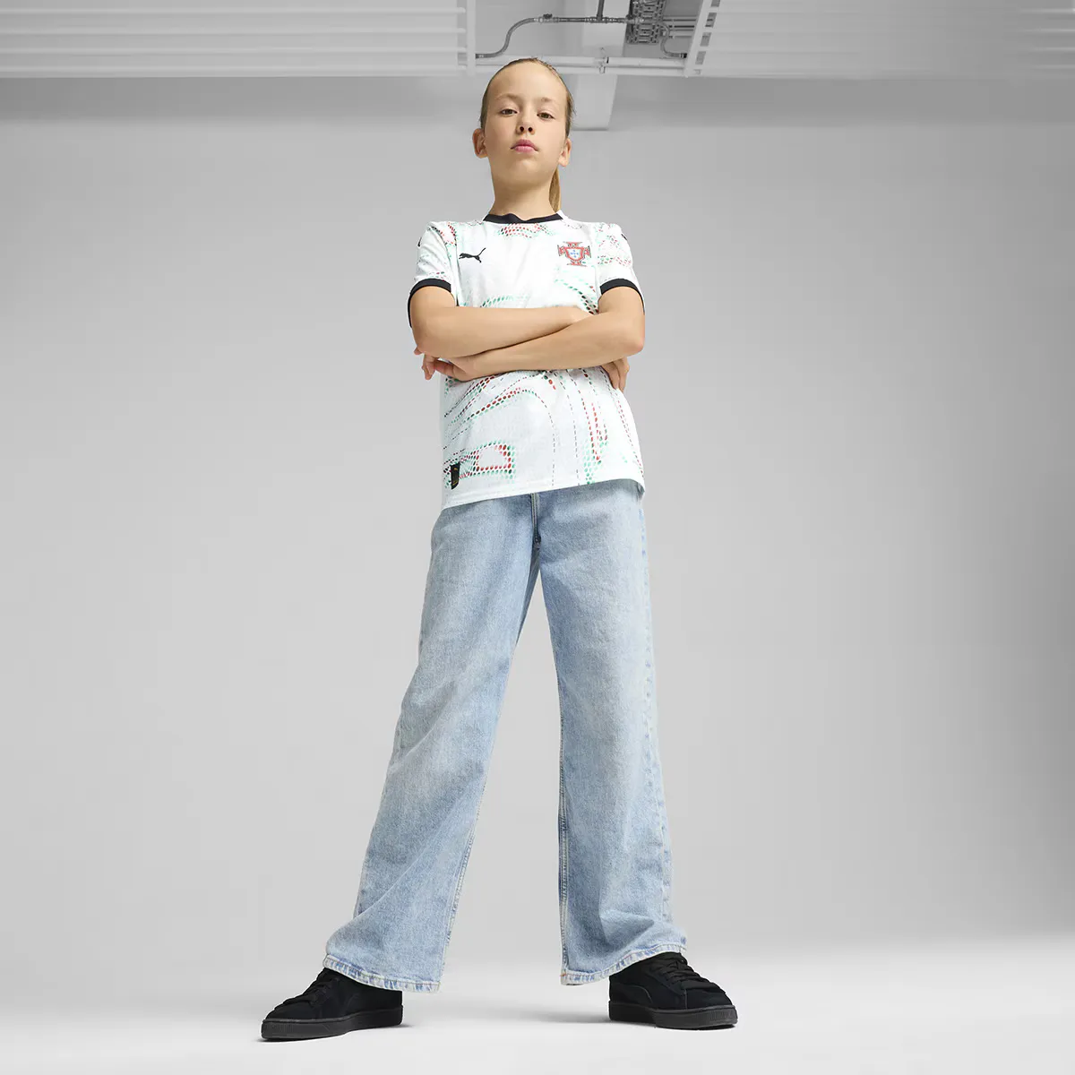 Будущее ярко светит в экипировке Португалии. Смелые дизайны с красными и зелеными отражениями оживают с движением, чтобы отпраздновать смешение искусства, технологии и футбола в современной Португалии. Разработанная для молодых поклонников, эта футболка сочетает в себе тот же стиль матчей с непринужденным силуэтом, деталями и материалами, идеальными как для дня матча, так и для повседневной жизни.