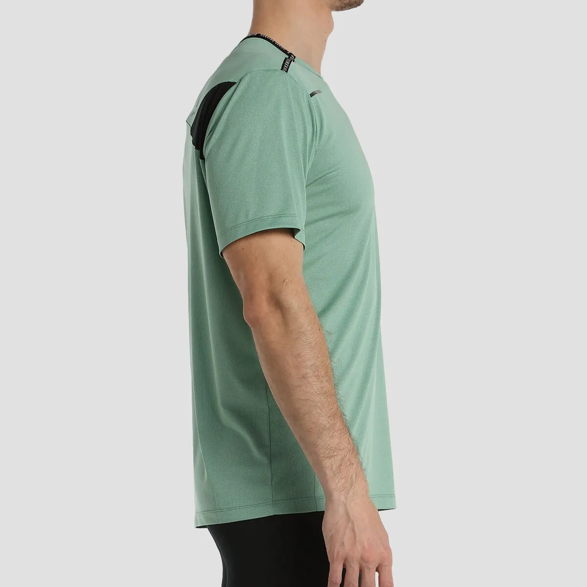 Короткая футболка с эластичным круглым воротником. Сетчатая вставка на спине и контрастные элементы под рукавами, отражающие детали. Ткань из полиэстера жаккард с отделкой Quickerdry.