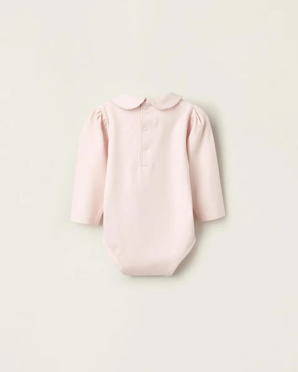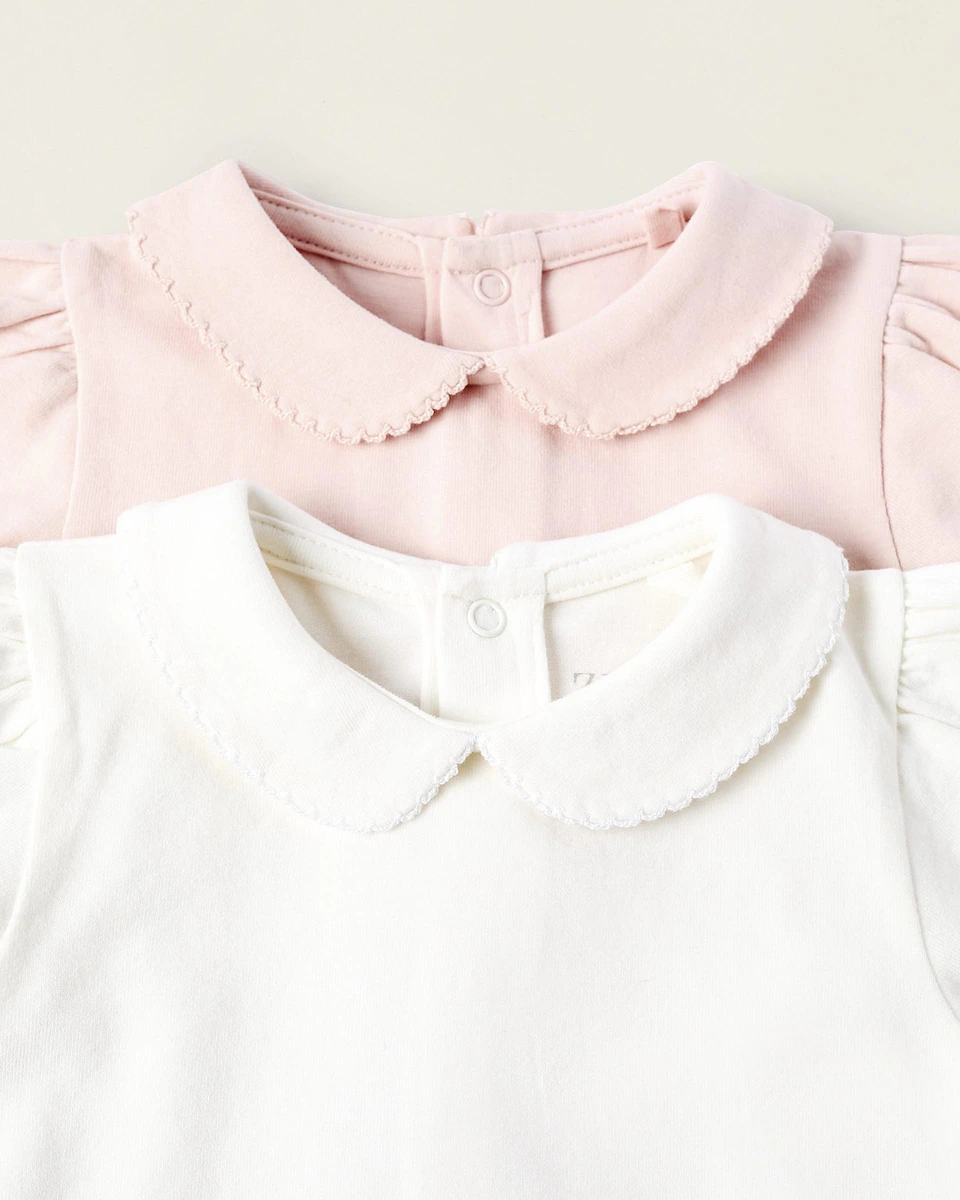 Пакет из двух боди с длинным рукавом для новорожденной, одно белое и одно розовое. Изготовлены из хлопка с добавлением эластичности для большего комфорта и свободы движений. Воротник с отделкой крючком. Застегиваются на кнопки на спине и в области промежности для удобного одевания. Напечатанные бирки, чтобы не раздражать кожу. Практичные и удобные, эти боди являются необходимостью в гардеробе.