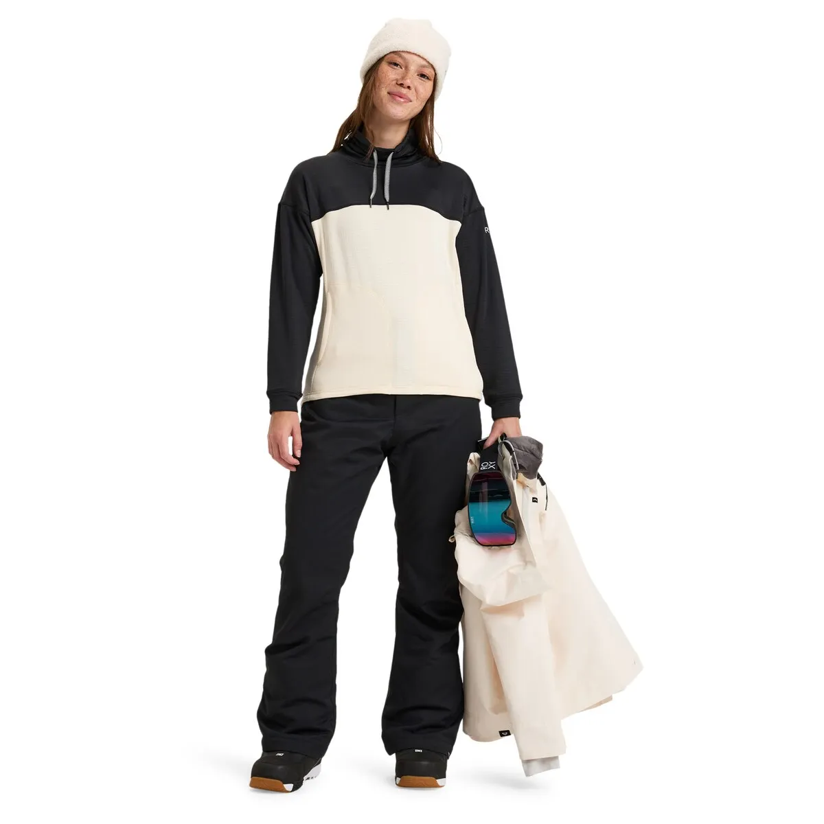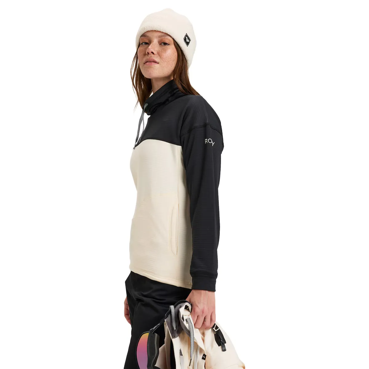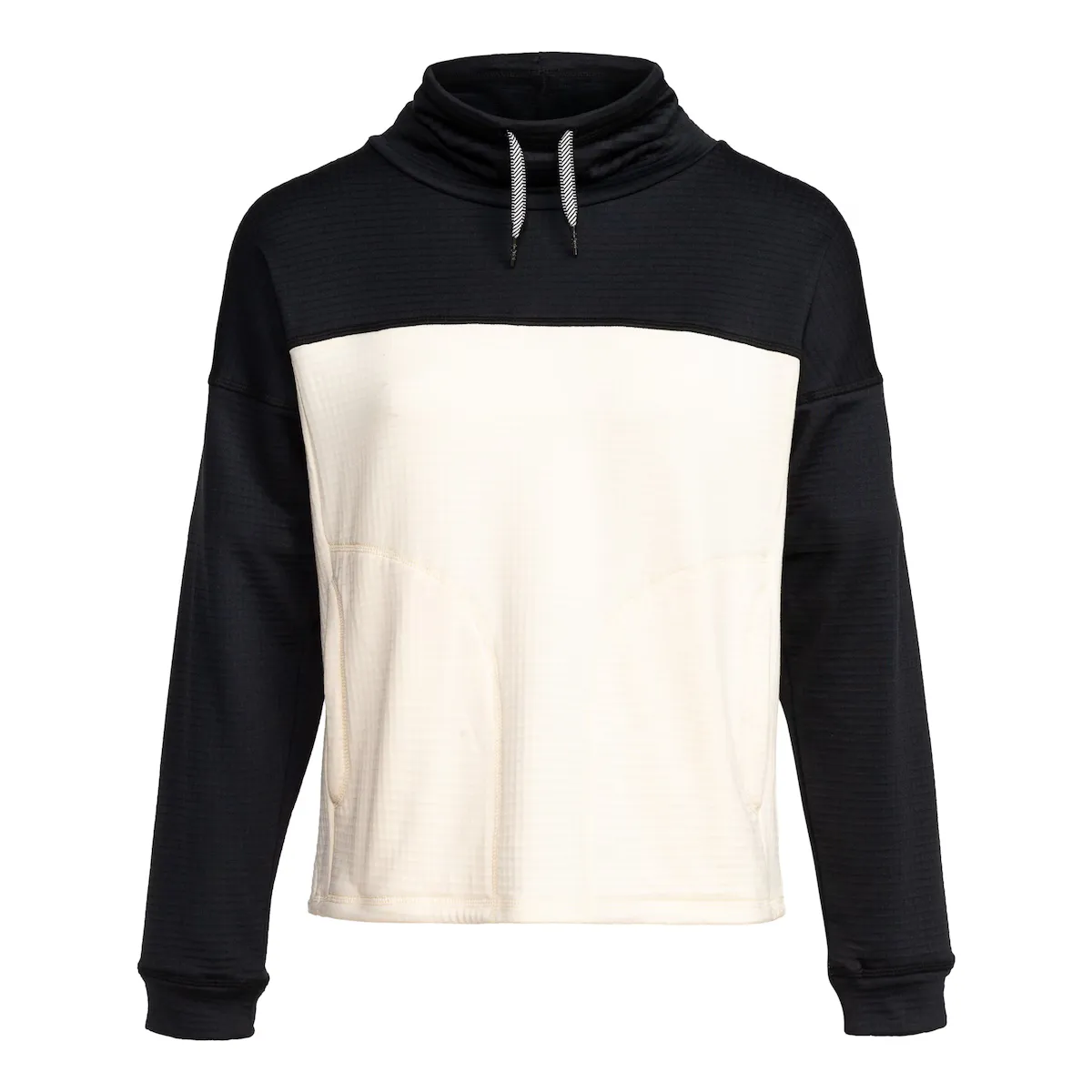 Толстовка для женщин. Характеристики включают: Ткань: фактурная и начесанная ткань из 95% переработанного полиэстера и 5% эластана. Технология: внутренний теплый флисовый материал WarmFlight сохраняет тепло тела и отводит влагу. Воротник: высокий воротник. Рукава: длинные рукава. Застежка: закрытый дизайн. Карманы: карманы для рук и Другие характеристики: регулировка с помощью шнурка.