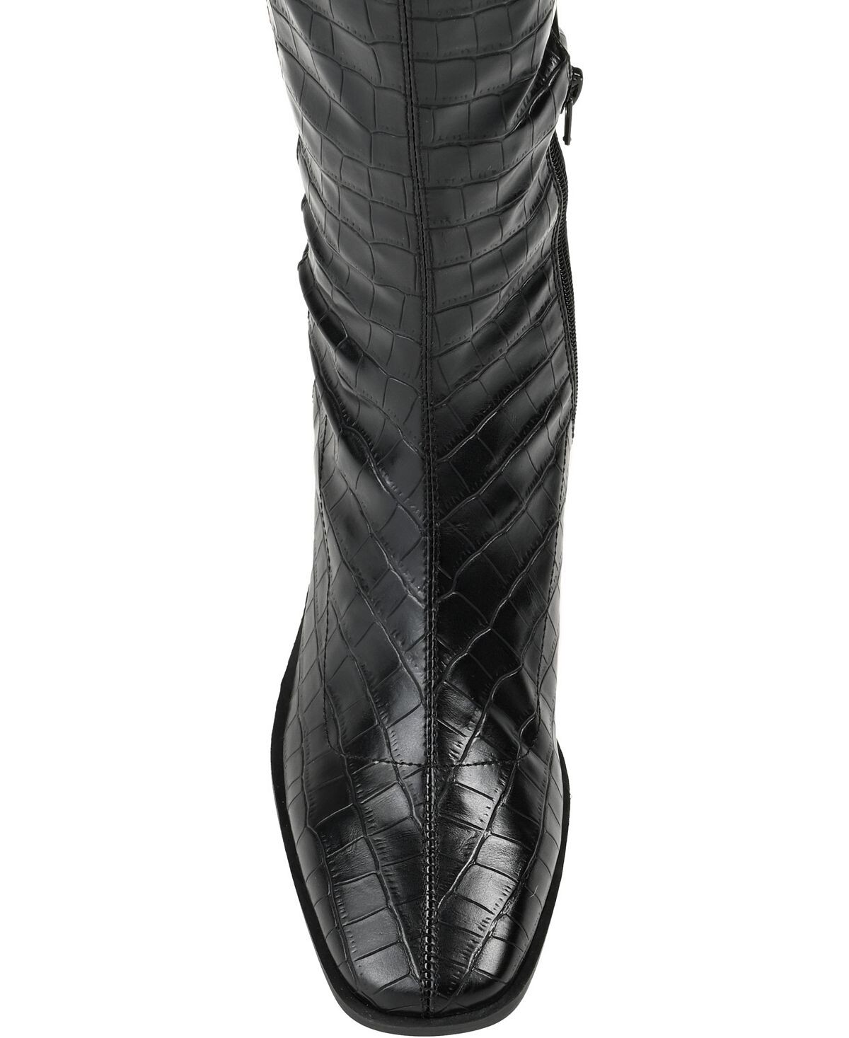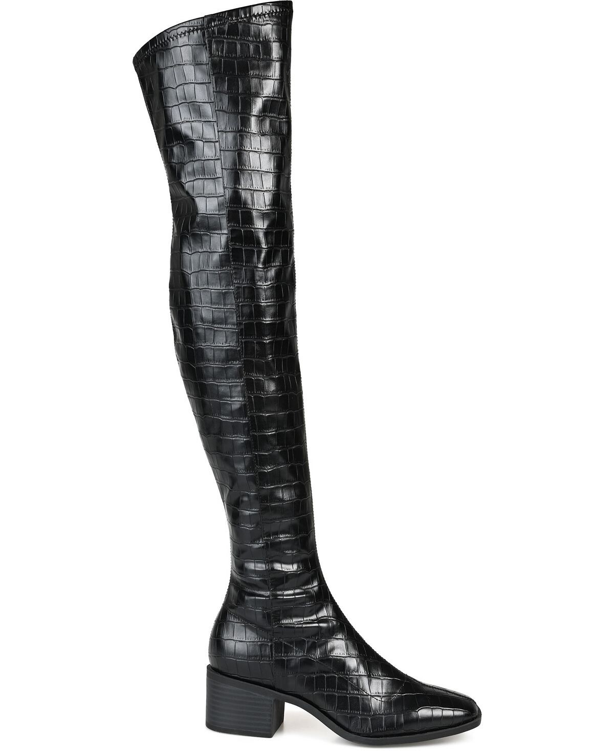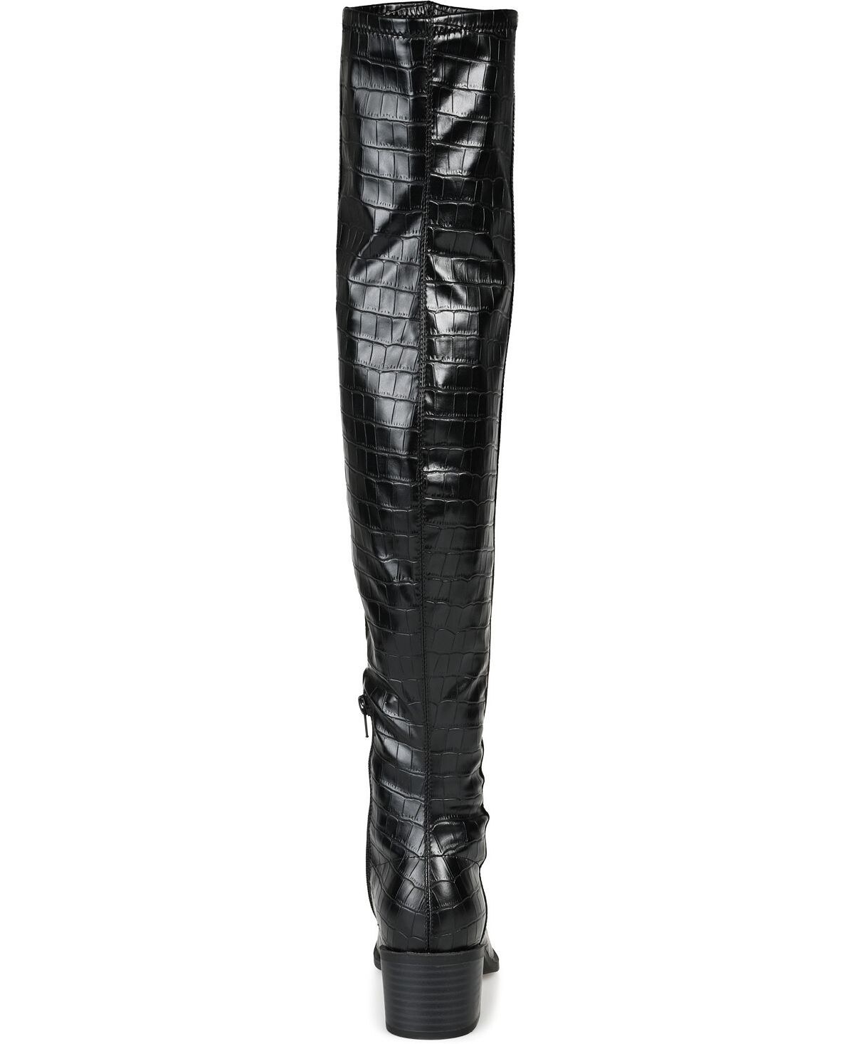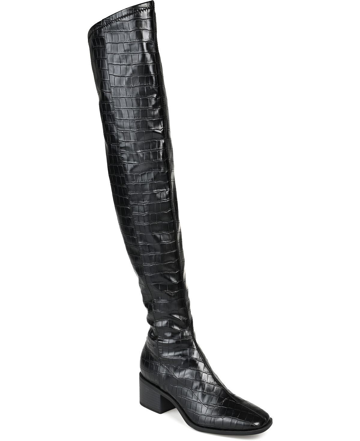 Определение смелого стиля: высокие ботинки Mariana от Journee Collection. Эта модель с широкой икрой, комфортной стелькой из пеноматериала толщиной 4 мм и верхом из эластичной веганской кожи обеспечивает комфорт без ущерба для стиля. Квадратный носок формирует образ, а низкий каблук придает изящность.