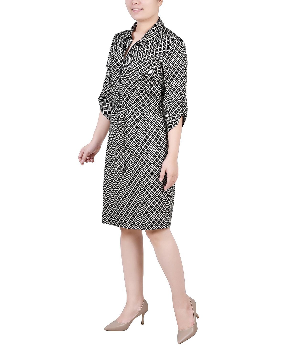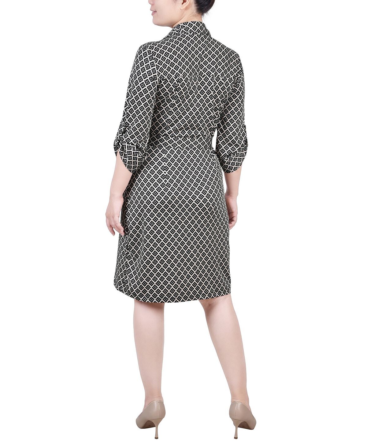 Платье-рубашка Petite с поясом и молнией спереди NY Collection
