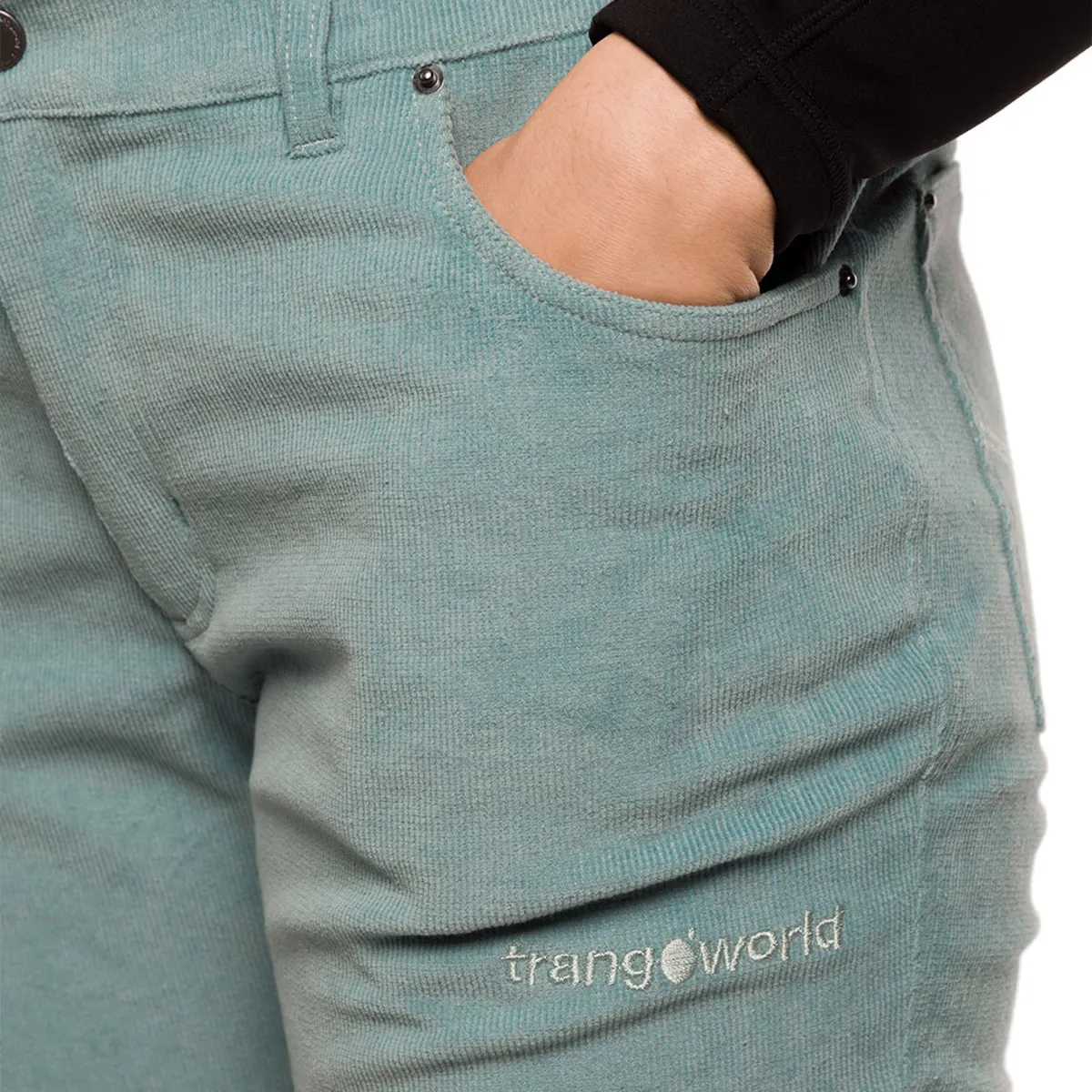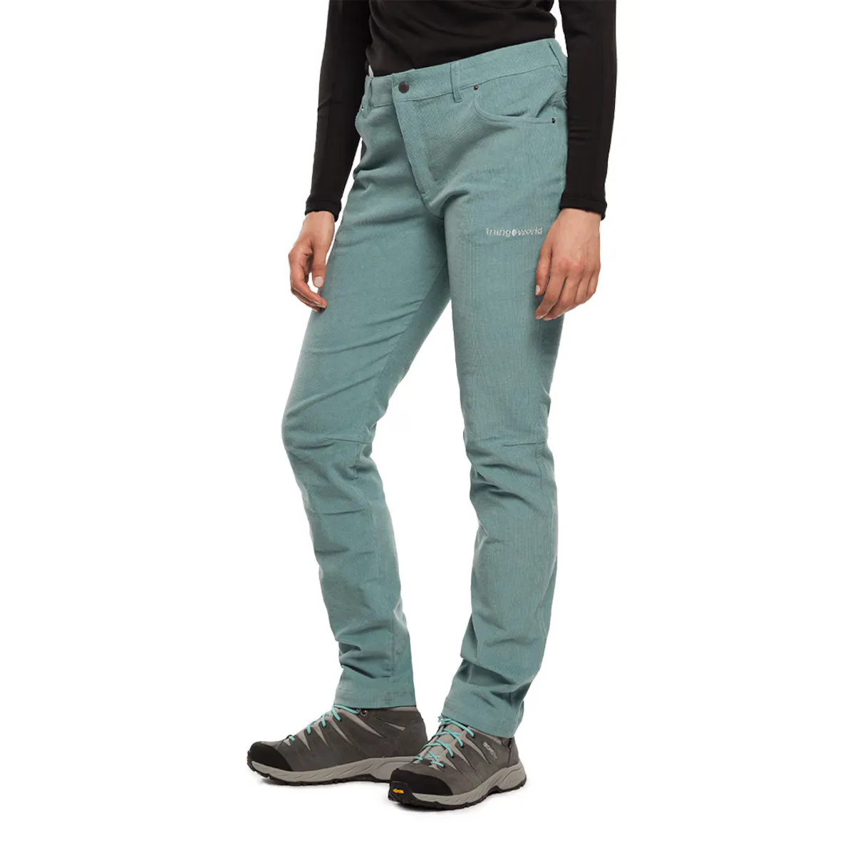 Хлопковые брюки с эластаном для пеших прогулок. Фиксированная талия с кнопкой, V-образный вырез и боковые и задние карманы. Удобные и эластичные для большей свободы движения.