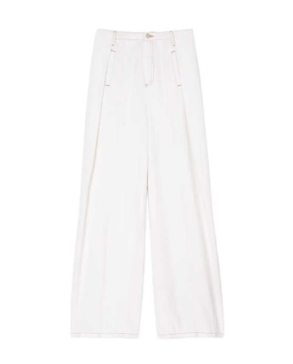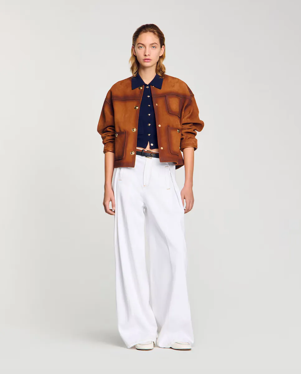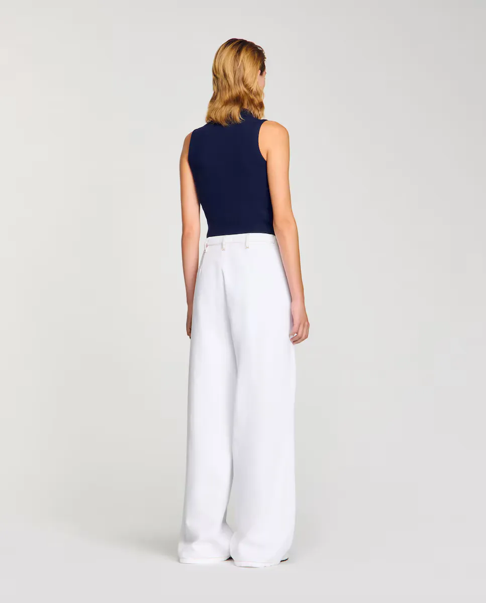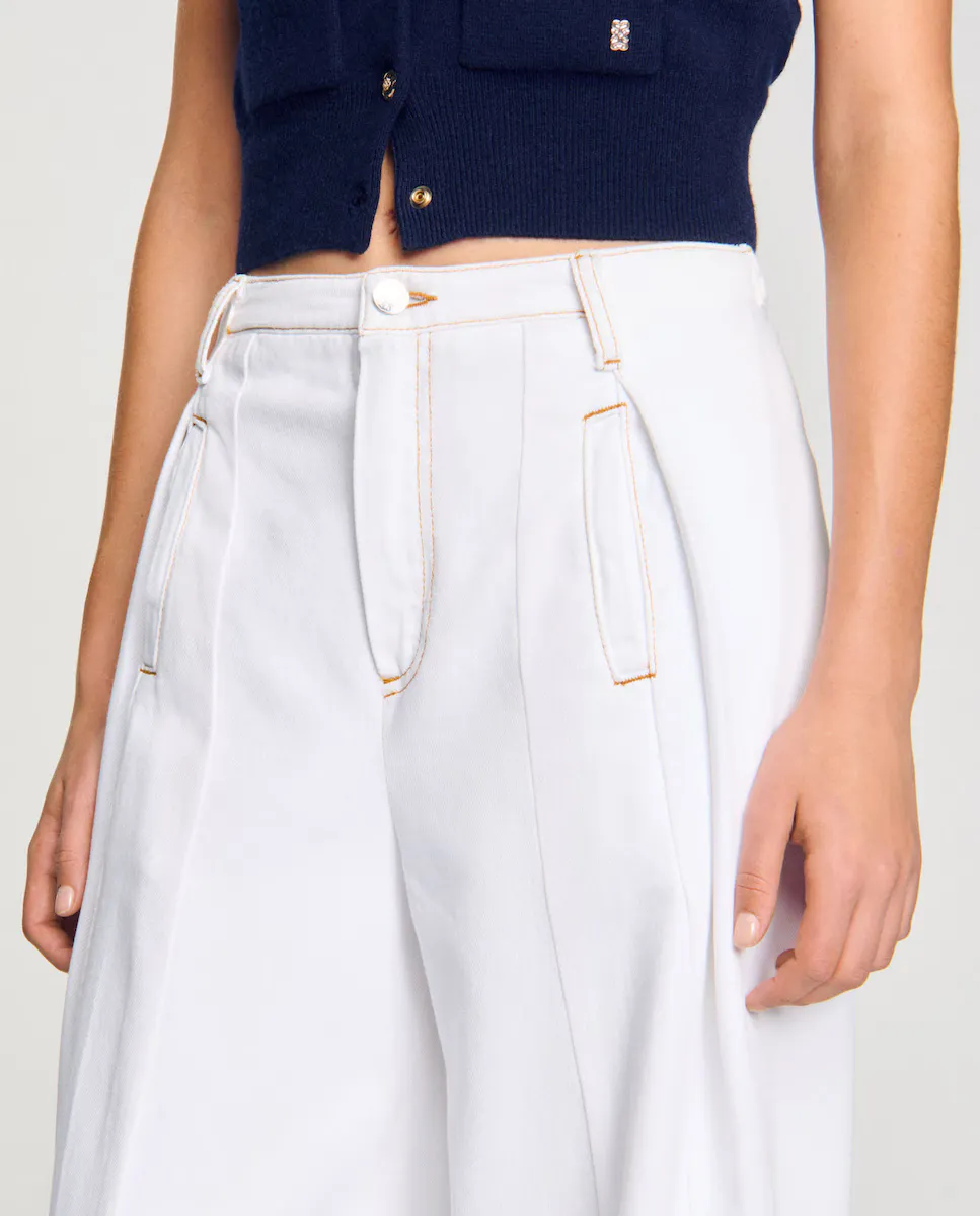 Широкие джинсы с защипами, контрастной строчкой и карманами спереди и сзади. Широкие джинсы Sandro для женщин. Контрастная строчка. 5 карманов. Закрытие на молнии и кнопках.