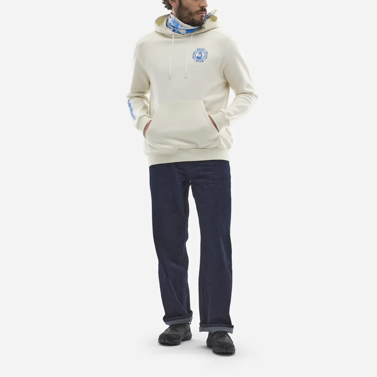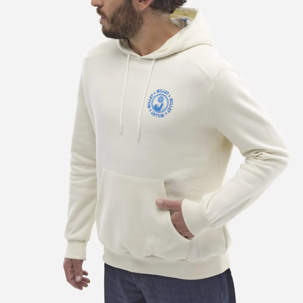 Изготовленная в Европе из органических волокон, этот худи из флиса с кенгурушным карманом обеспечивает тепло и комфорт после тренировки. Его большой оригинальный принт на спине выполнен Бенжаменом Жанжаном. Эксклюзивное творение для бренда Millet, которое располагается в маленьком размере в верхнем левом углу груди, дополнено смайликами в виде татуировок на правом рукаве.