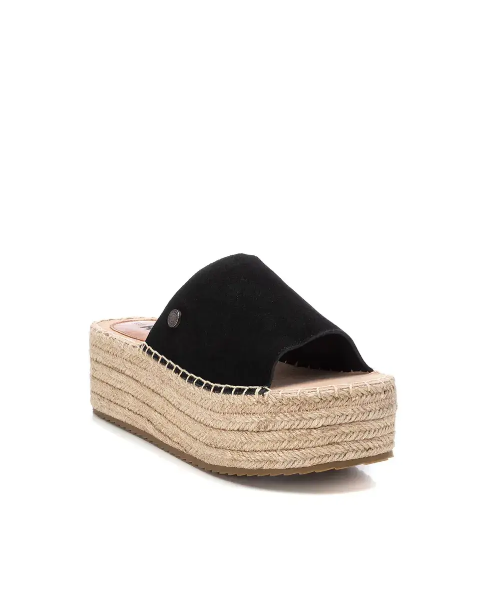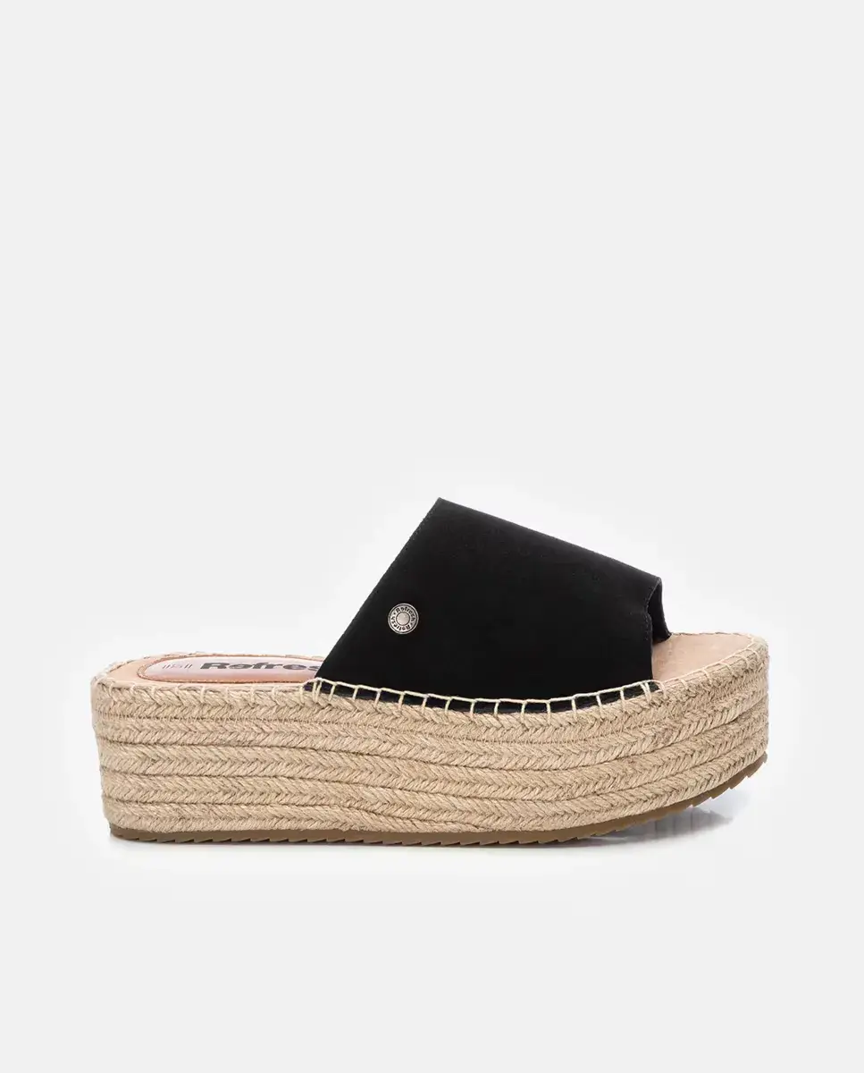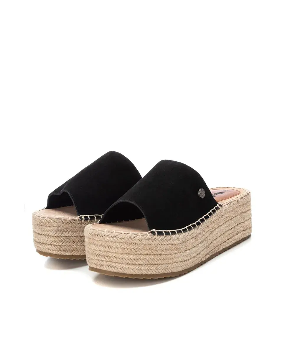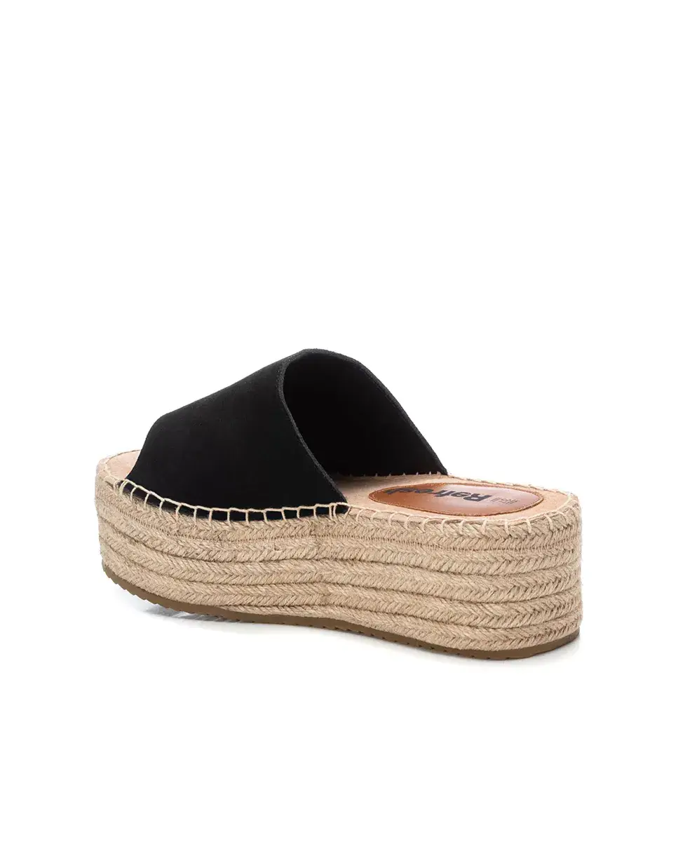Женская сандалия от бренда Refresh. Изготовлена из замши. Широкий открытый дизайн и платформа высотой 6 см из джута. Скользящая подошва. Обязательная модель в этом сезоне.