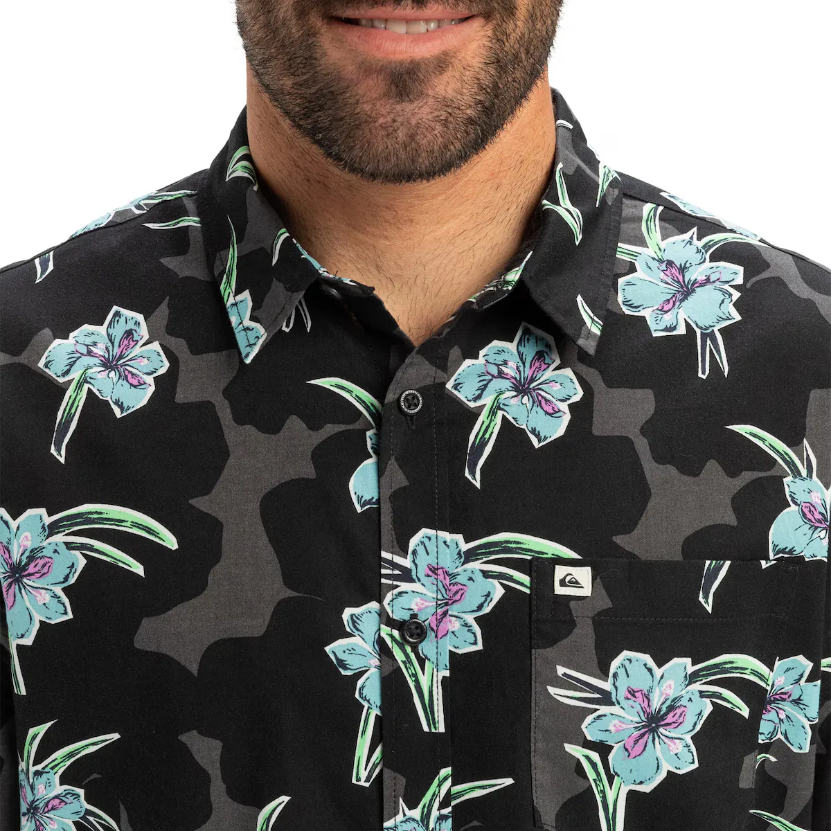 Рубашка с короткими рукавами для мужчин. Характеристики: Коллекция: Lifestyle, Ткань: хлопковый тафтовый, Стирка: стирка в готовом изделии, Покрой: обычный покрой, Воротник: классический воротник, Рукава: короткие рукава, Карманы: один карман на груди, Застежка: застежка на пуговицы, Бренд: ярлык Quiksilver на кармане и боковом шве, Другие особенности: волнистый подол.