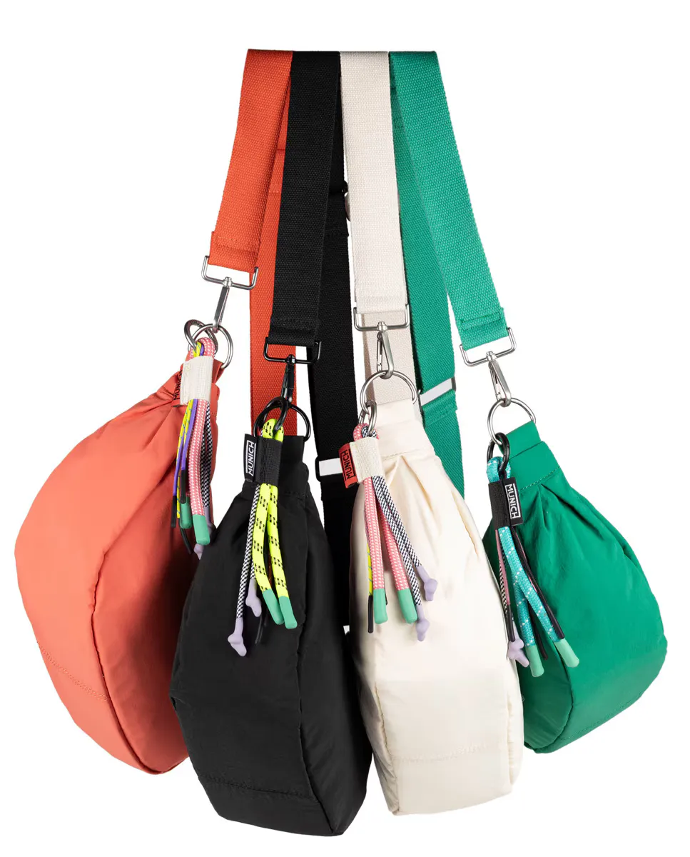 Сумка-хобо, изготовленная из переработанного полиамида. Основное отделение на молнии. Деталь с вынимаемым ключом на веревке сбоку. Регулируемые и съемные ручки из хлопка.